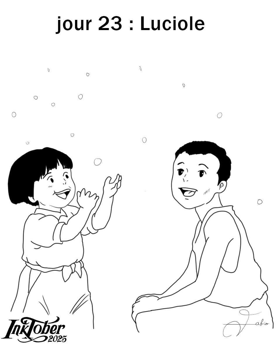 yurinomai 3,333 Posté(e) Jeudi à 10:19 AM (modifié) Bien le bonjour ! Jour 23, wouah ! On va le faire ! 😁 La lumière n'est évidemment pas parfaite, mais l'intention est là. Toujours moins de temps cette semaine, donc on fait ce qu'on peut ! 💪 Souriceau fait encore de belles trouvailles et comprend toutes les possibilités qu'offre un seul objet ! Avec un p'tit filtre froid pour tester (j'aurais presque pu ajouter un peu de jaune-orangé à ces lucioles, mais j'aurais perdu ma DA "crayon noir" only). . @DiamonesHéhé, bah au moins ça respecte tout à fait le thème ! @marina_sTout choupi le chat ! (Va-t-il résister à ses instincts) ? @daffOh, les ailes sont particulièrement réussies, on sent la finesse et les détails. @ApostroKeEncore un super chara design ! @GopperusToujours aussi expressifs tes personnages, trop bien ! @stefouTant de charme et de douceur. @bussi29Très belle idée ! @fabioArf, je m'attendais à cette ref si magnifique et pourtant si douloureuse. Modifié Jeudi à 06:28 PM par yurinomai 27 Partager ce message Lien à poster Partager sur d’autres sites More sharing options...