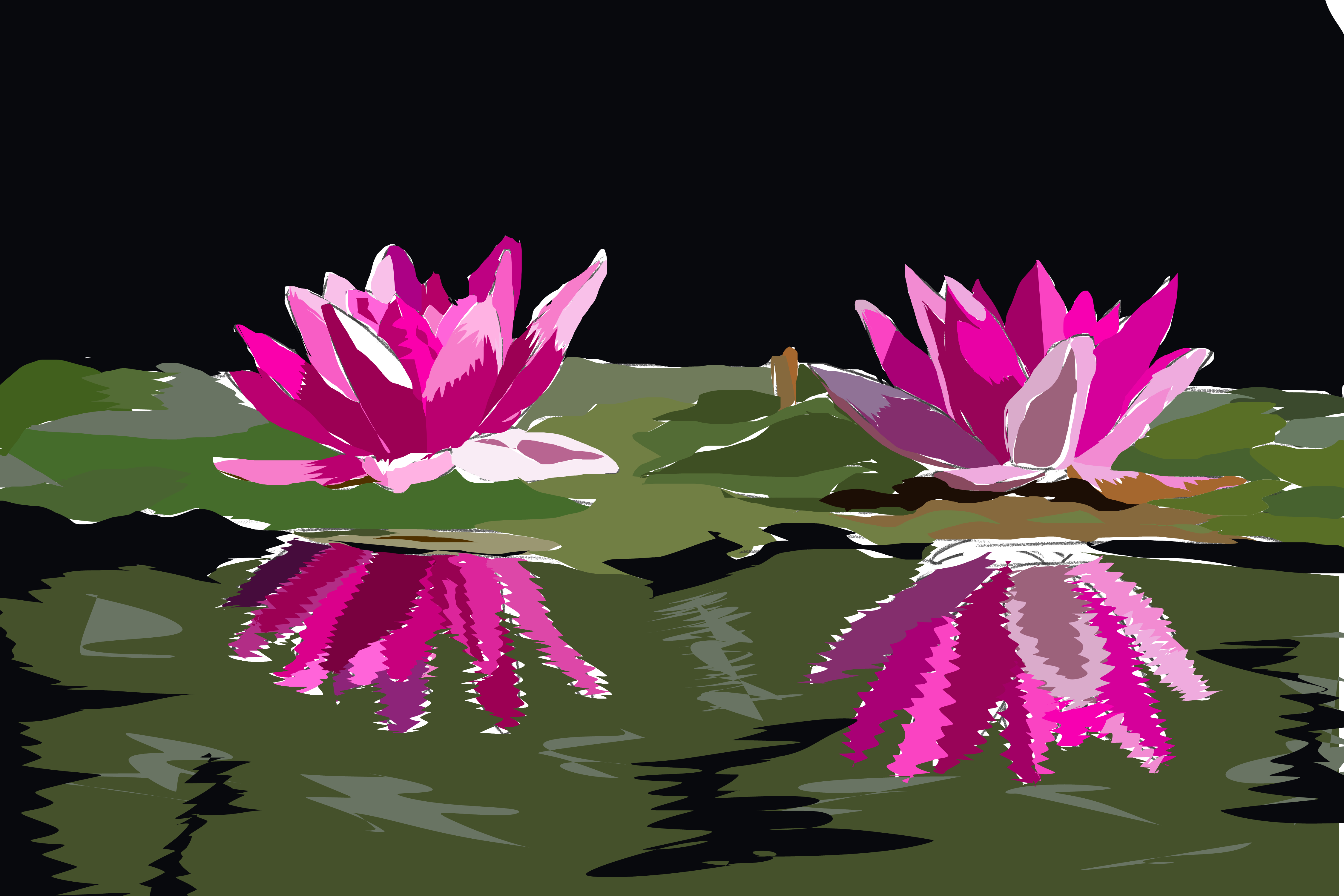 avant toutes chose, utilise bien le lasso pour avoir des contours propres et net pour que l'on puisse distinquer les différentes formes du painting. Concentre toi sur des partie précises, par exemple sur les nénuphars je me suis focus sur les pétales en premier et après sur le fond, j'ai passer 15h environ sur l'illustration. Le but n'étant pas de se décourage mais tout de même d'essayer d'avoir un résultat le plus aboutis possible.