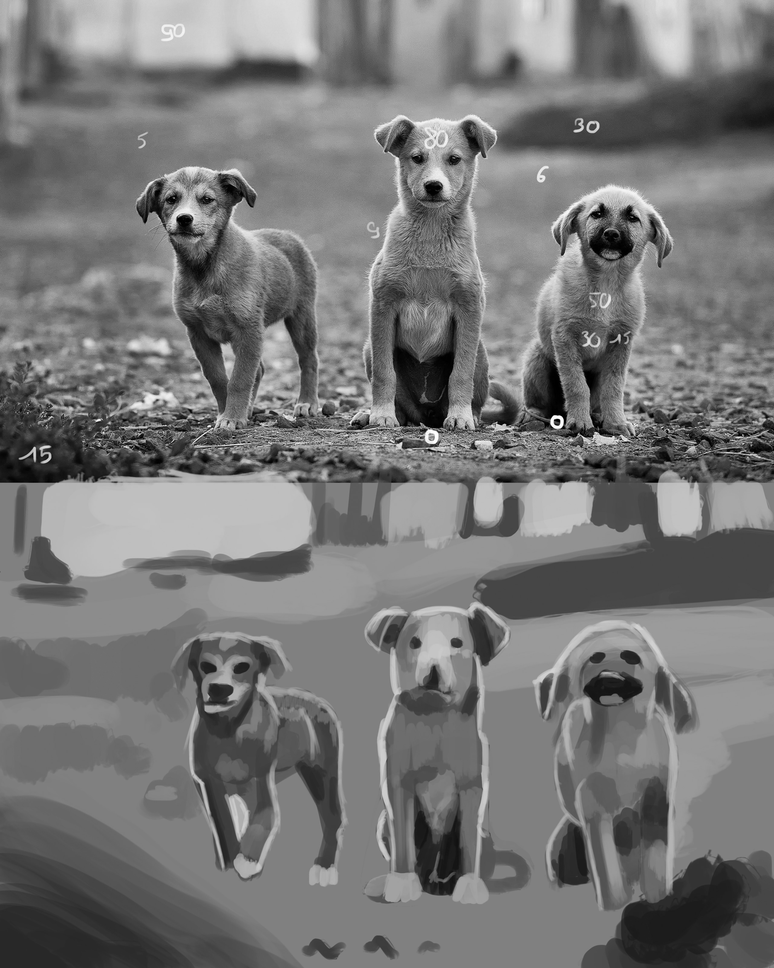 Très cool, on ressent déjà plutôt bien les volumes ! Pense à rajouter des ombres d'occlusions encore plus sombres au niveau des orbites, du nez et des dents, pour pousser plus loin encore le rendu et le réalisme :)