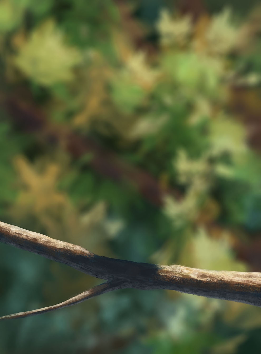 Première partie de l'illustration des oisillons, réalisation du fond et de la branche sur laquelle ils seront perchés, exercice de fin de chapitre 1 de la partie 1 du Programme indispensable.