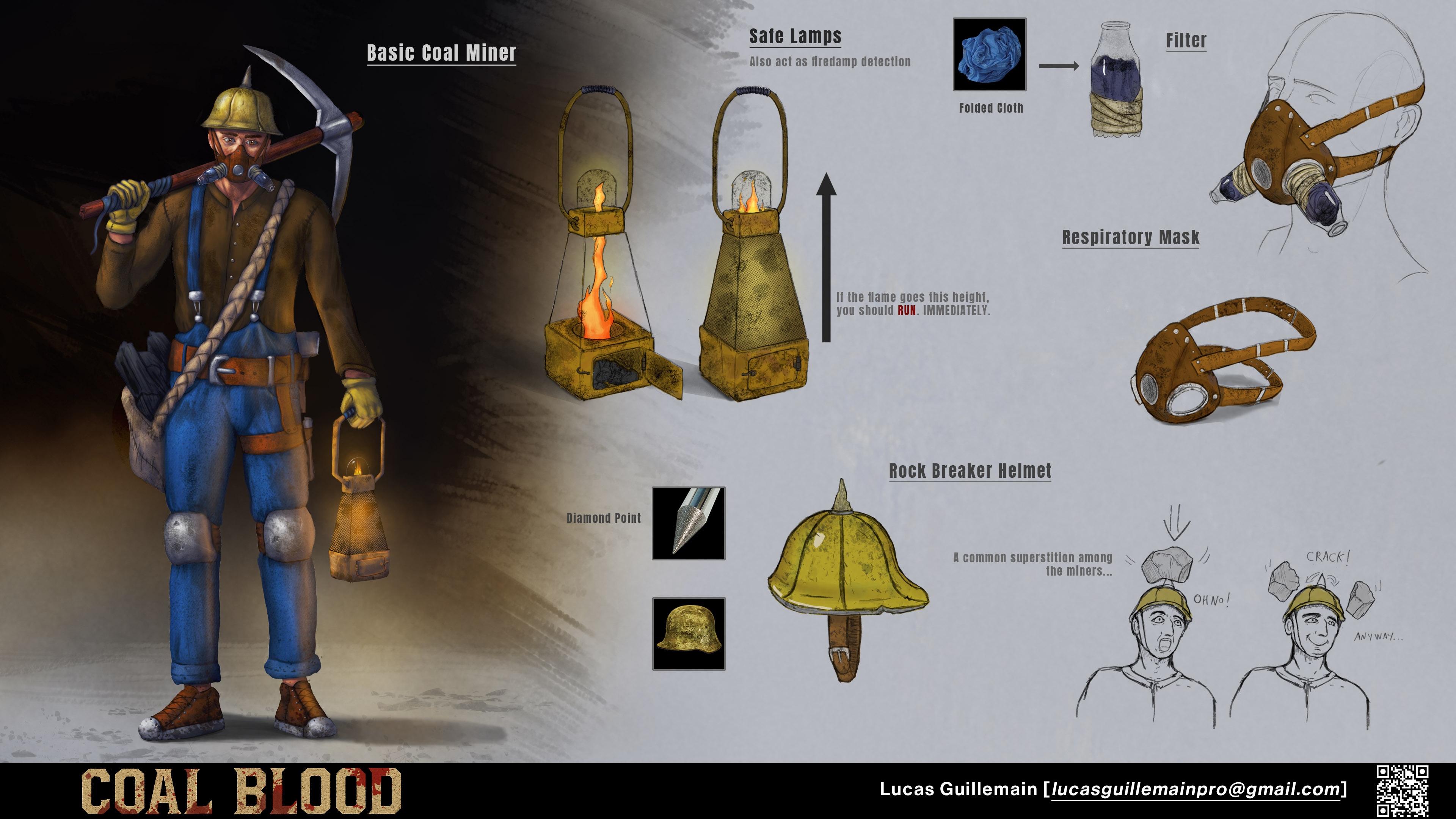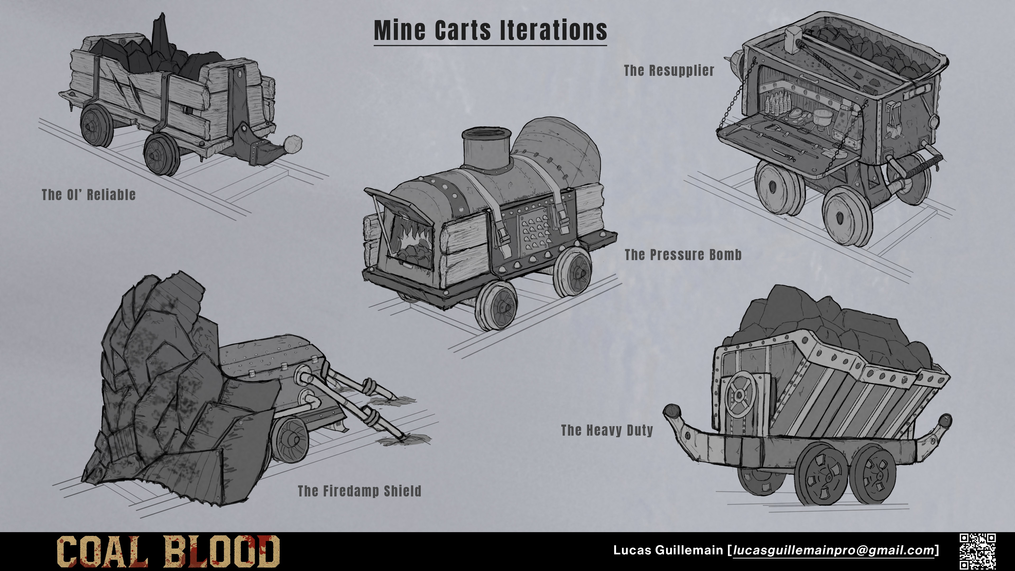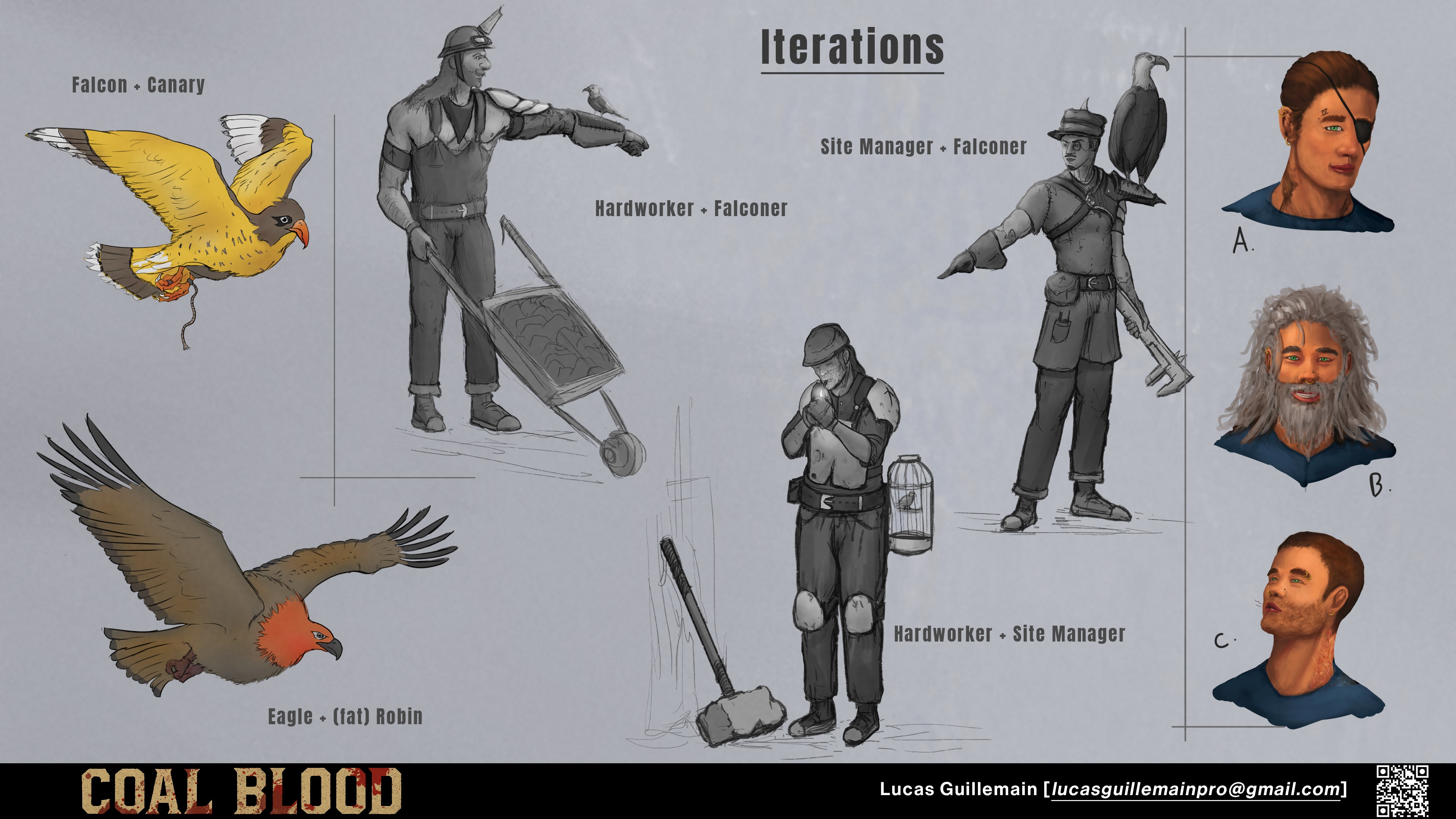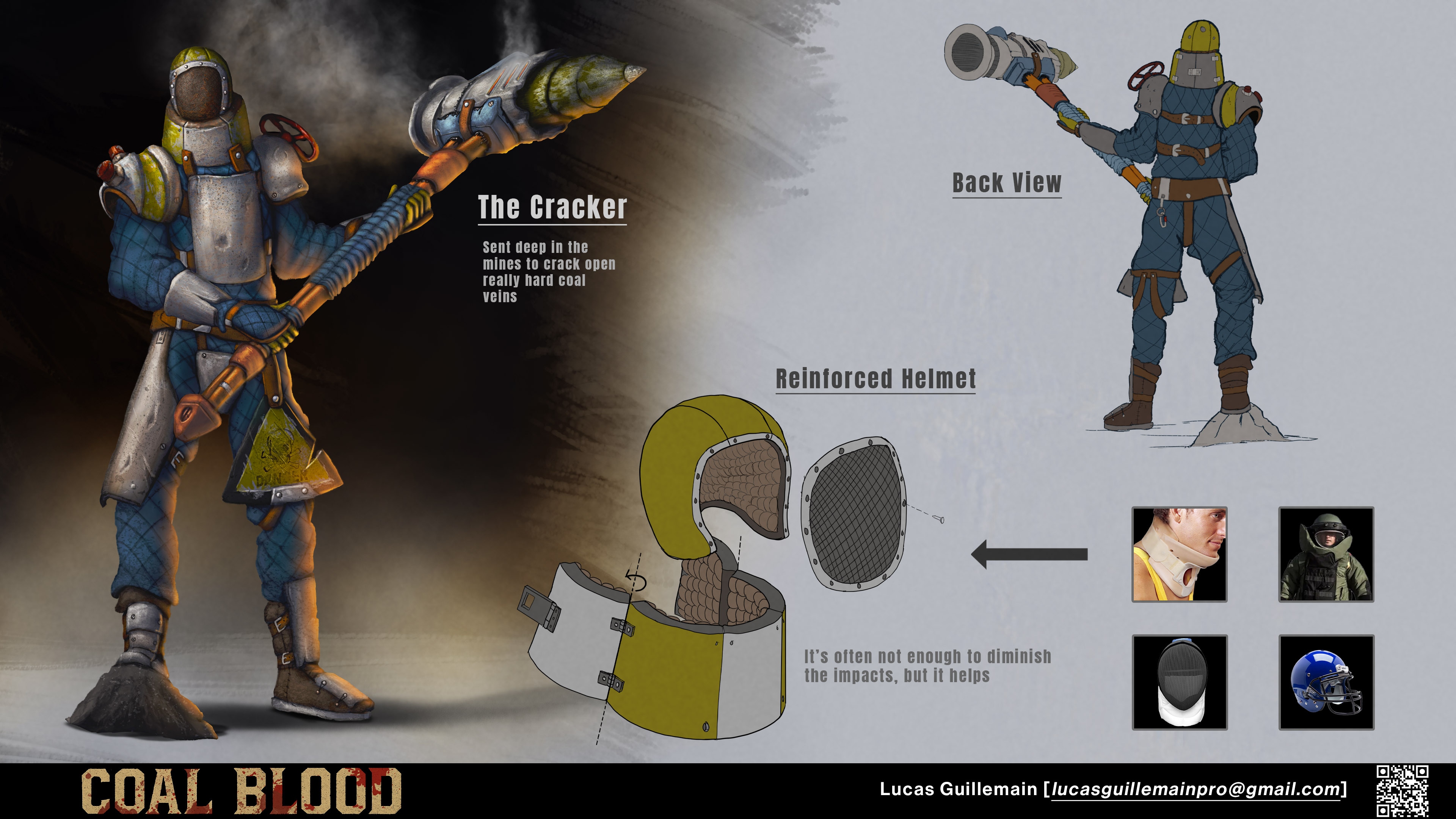 Ici l'idée était de faire le design de toute la faction qui s'occupe d'exploiter le charbon, les mineurs (logique :D). Ca me permet de me faire un peu la main sur le process, et ça me permet de continuer à pas mal apprendre au niveau des fondamentaux encore !