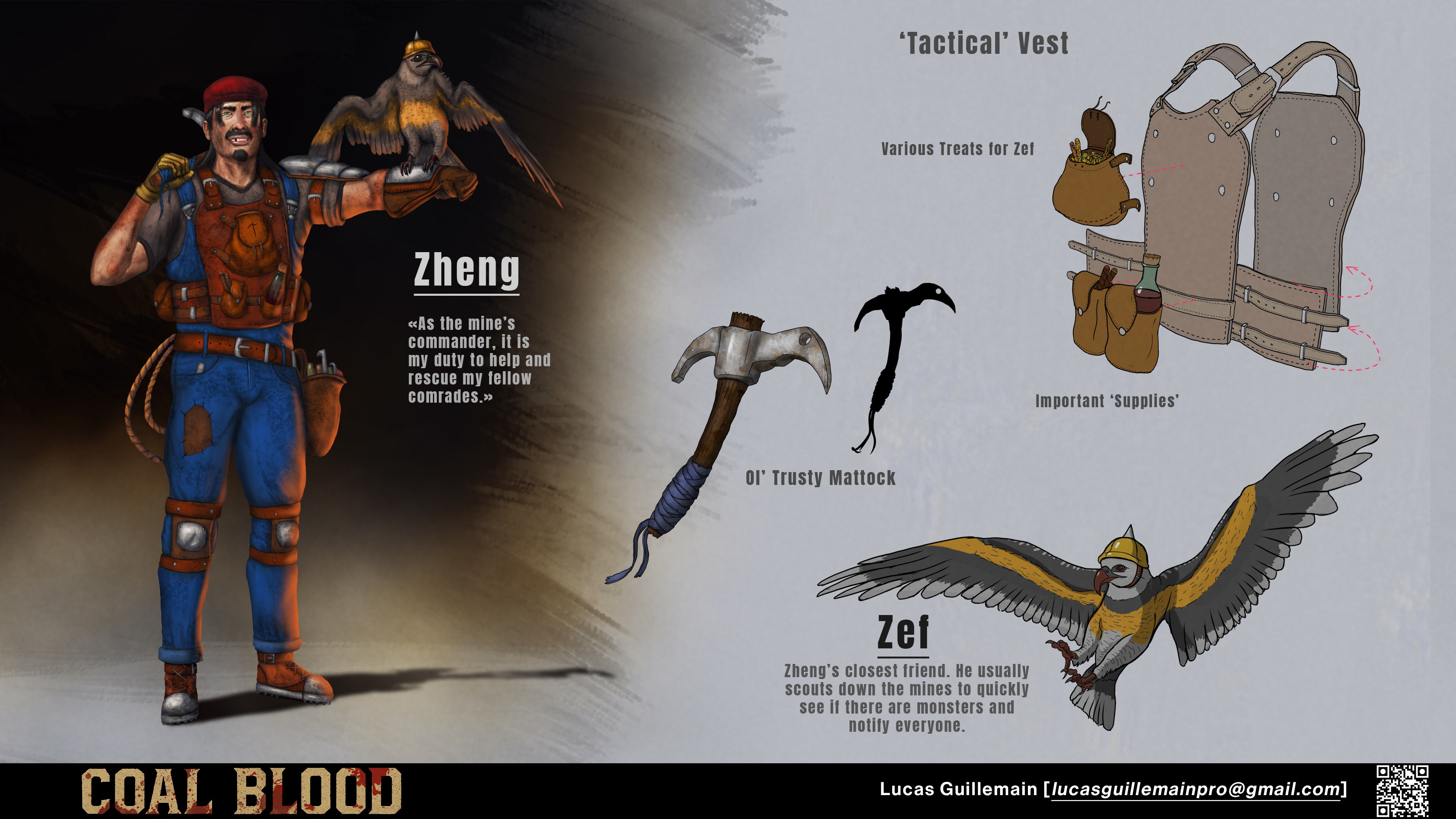 Premier essai d'un portfolio axé concept art de pnj pour un jeu vidéo fictif.