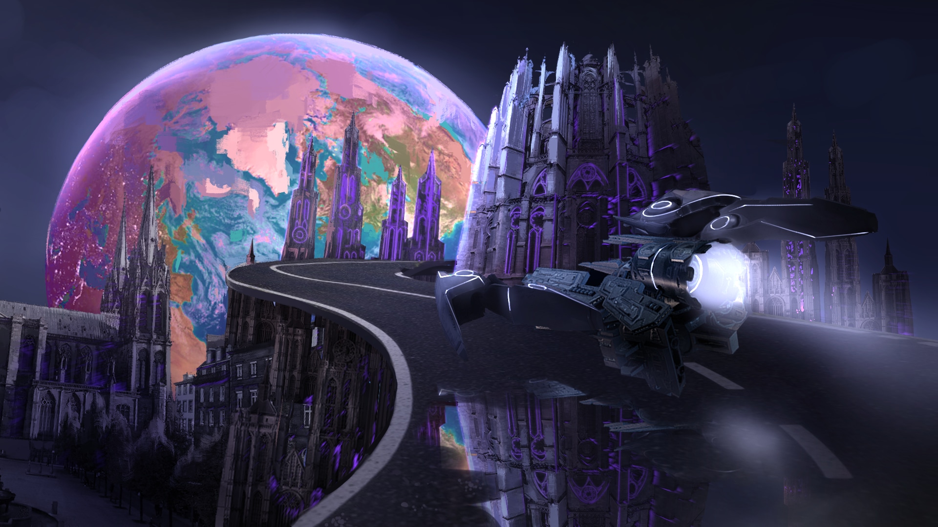 Petite illustration avec photobashing de la space church, église de l'espace pour mon projet : Nébuleuse !
