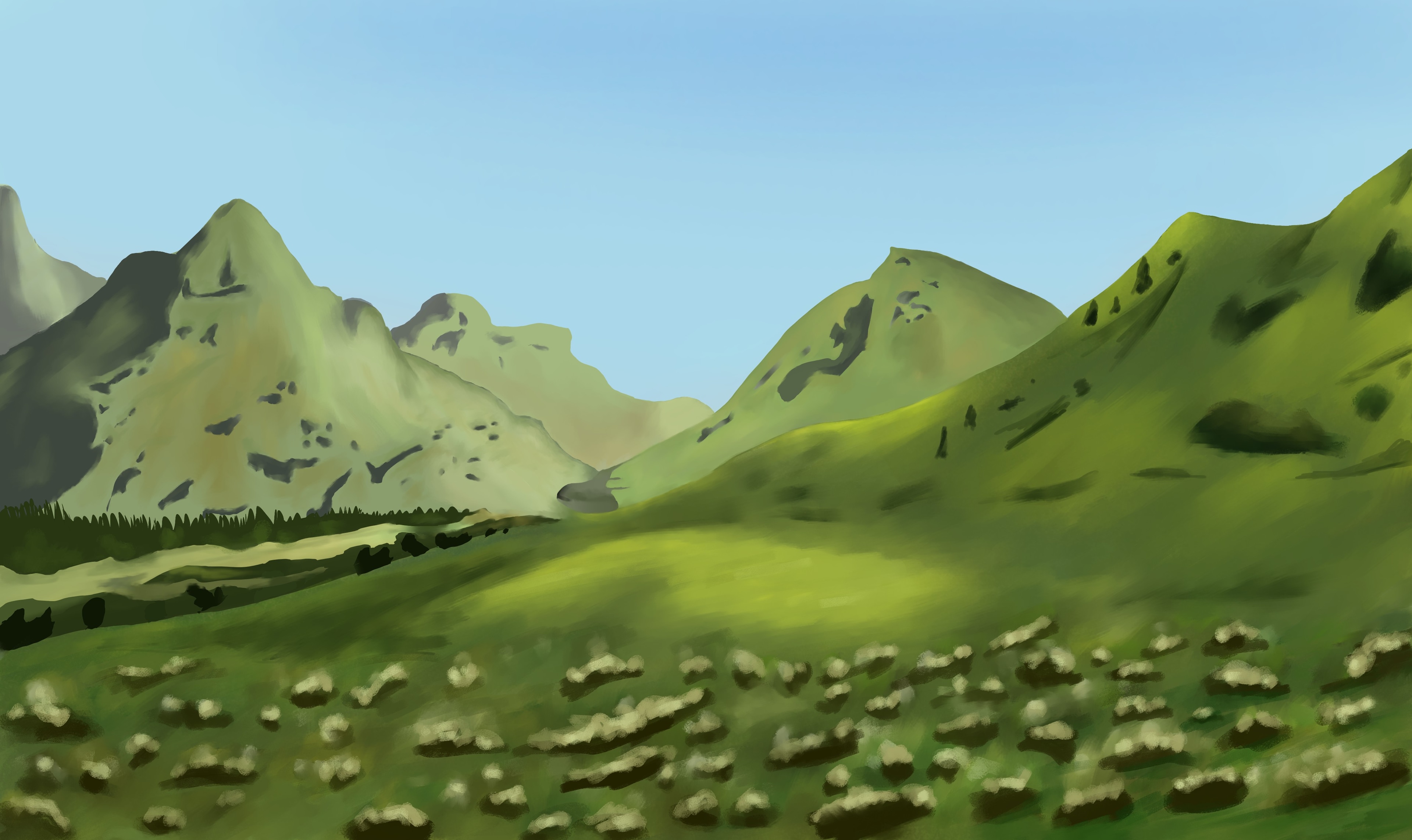 Voici mon premier paysage réalisé en 10 h environ sur le logiciel Krita, avec la technique du lasso.