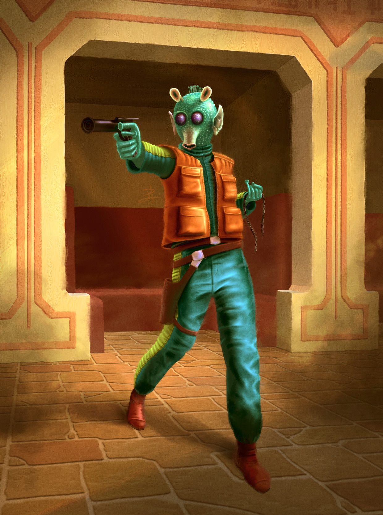 Fan art réalisé dans le cadre de la formation de la Partie 3 du programme indispensable. J'ai donc choisi l'univers qui me parle le plus, à savoir Star Wars et ce charismatique Greedo