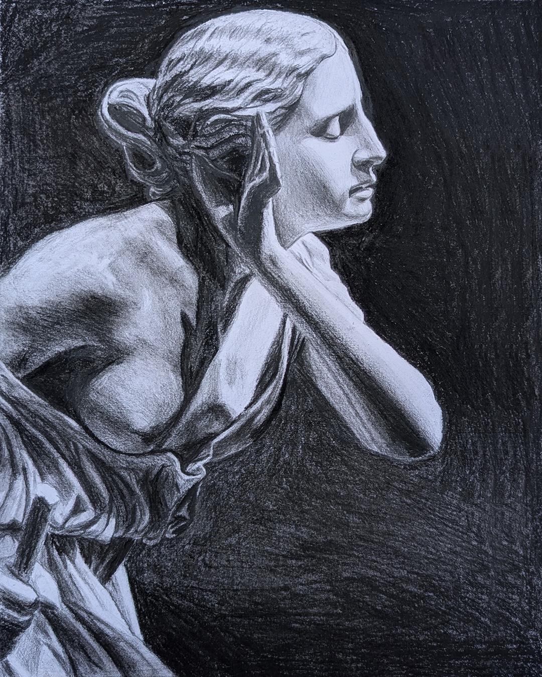 De retour en tradi, pause peinture, retour aux sources : crayons graphites et fusains.