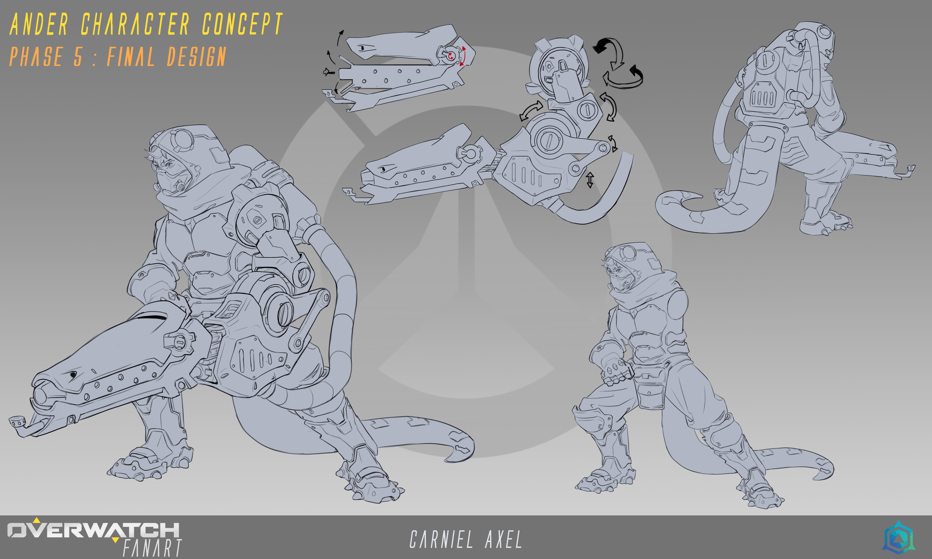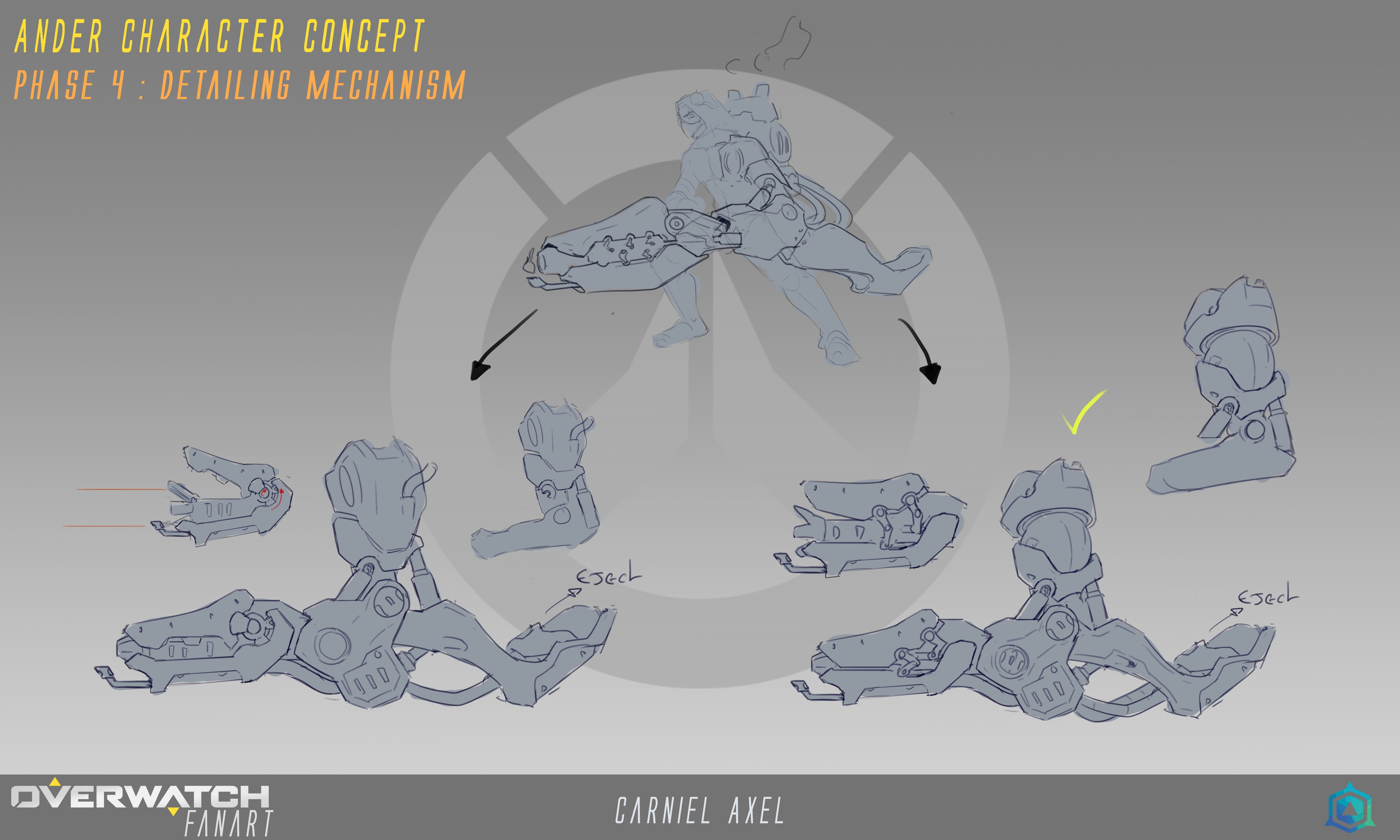 Following the artistic direction of Overwatch, we had to design a character with a mechanical arm and focus on making it work and believable.