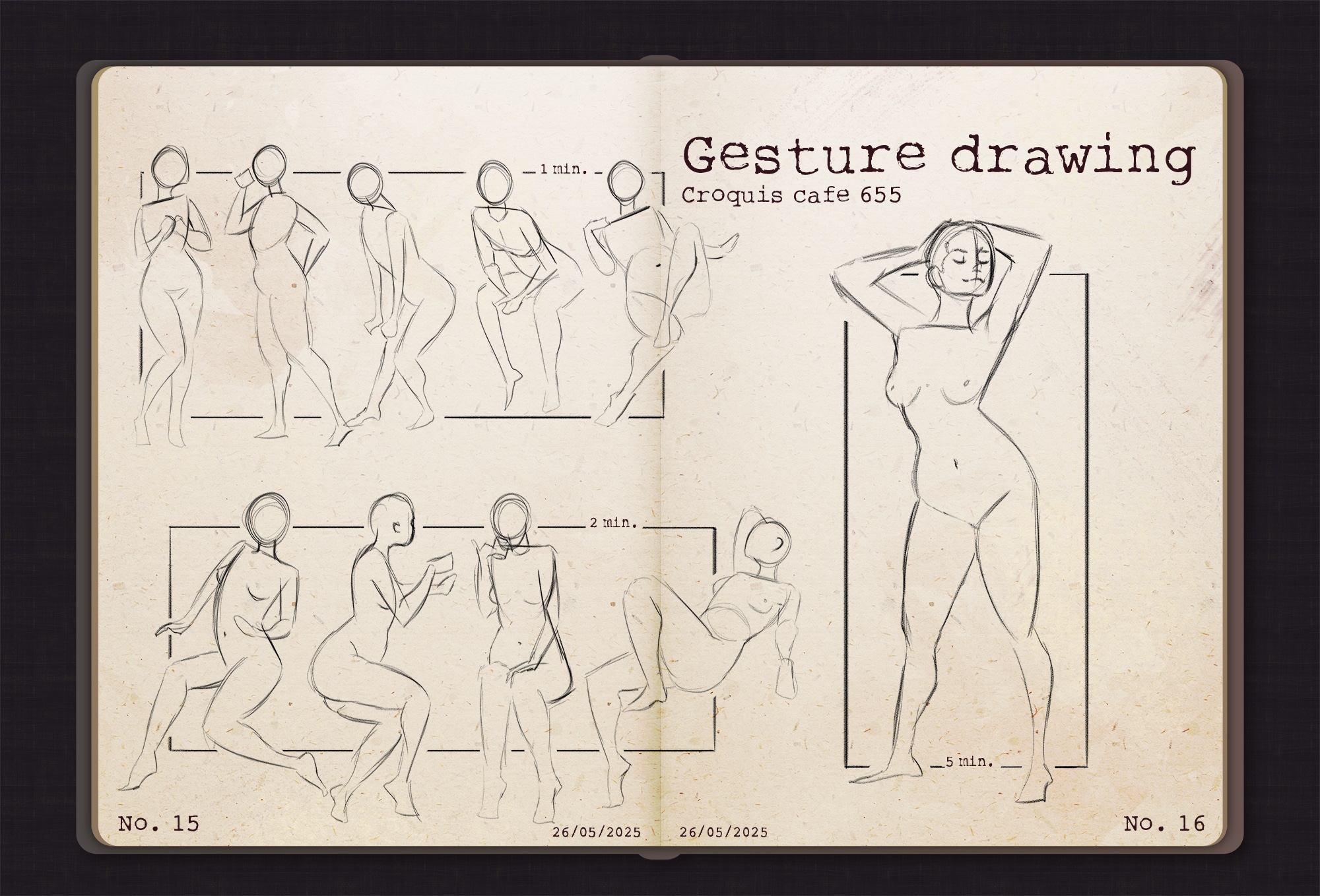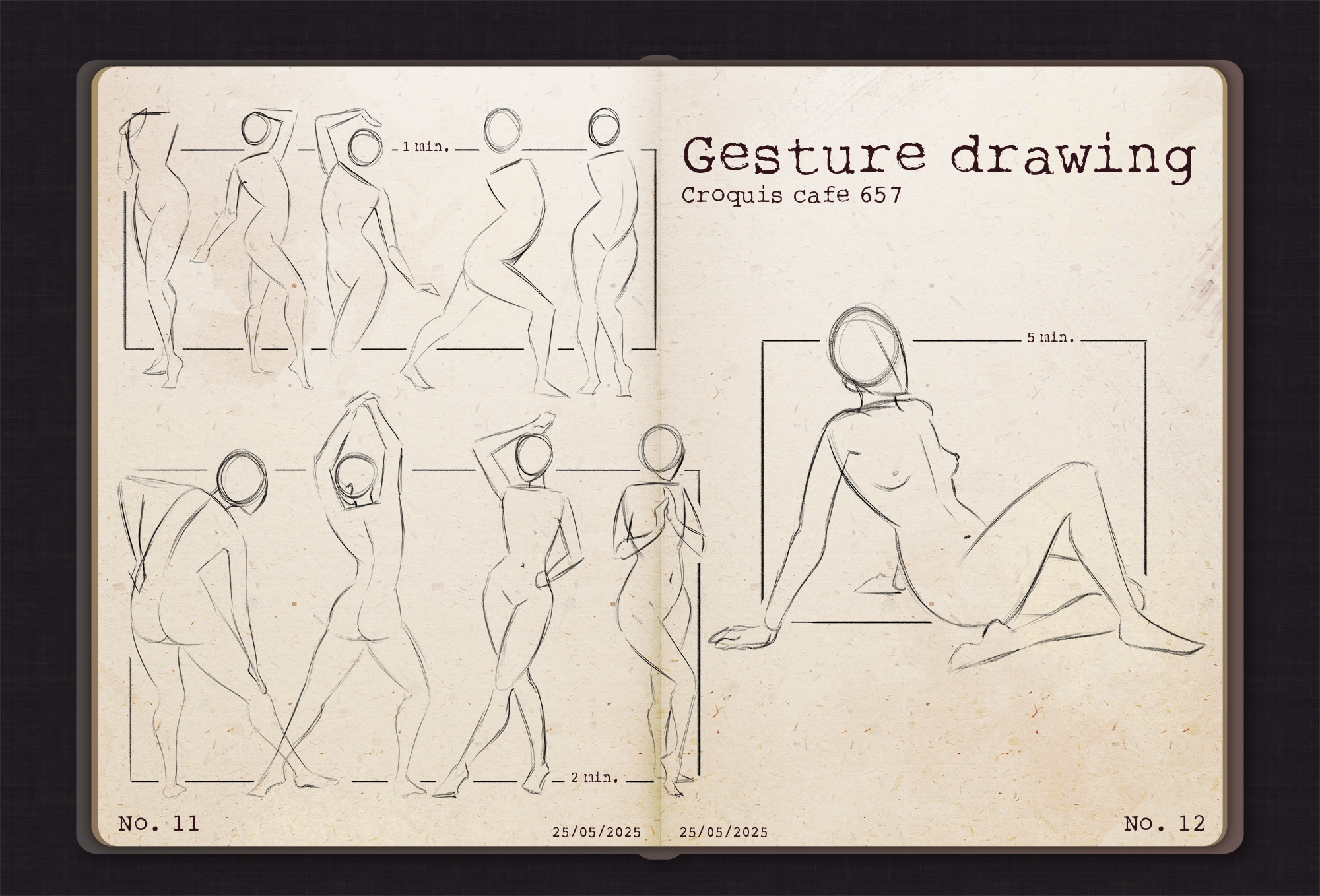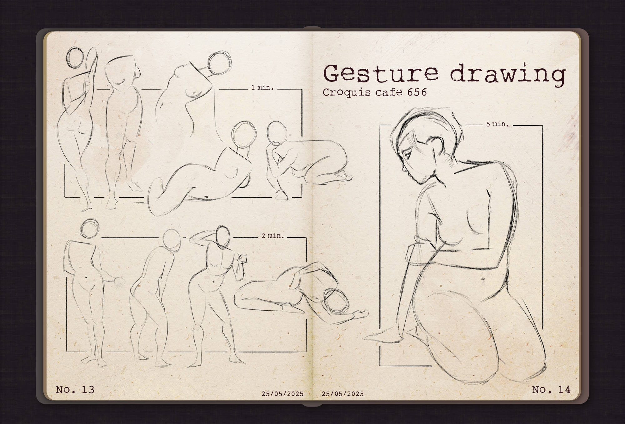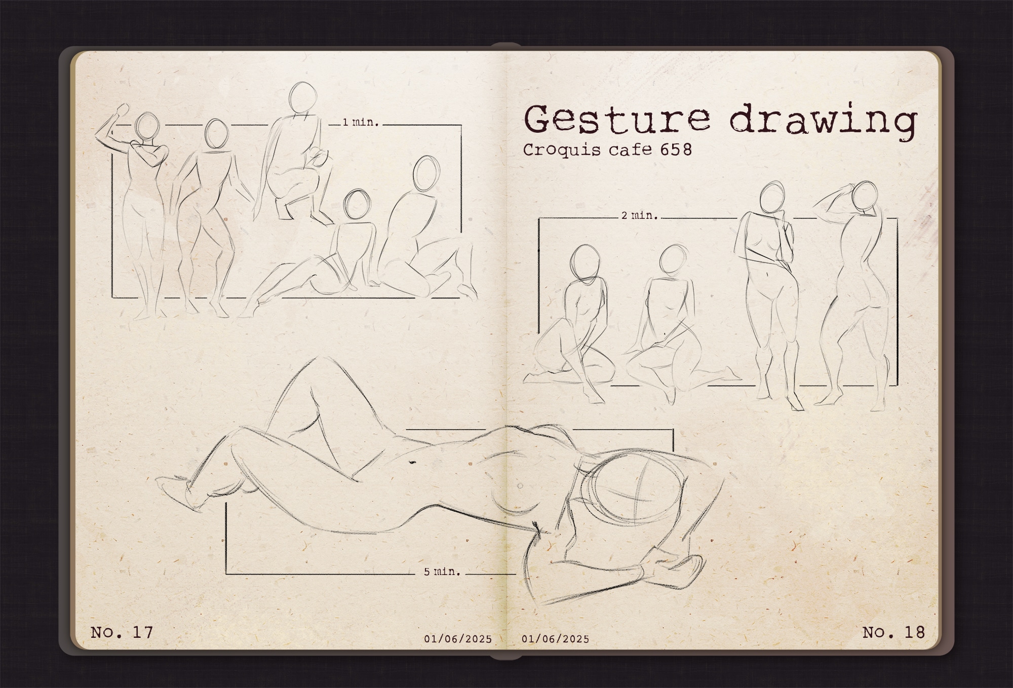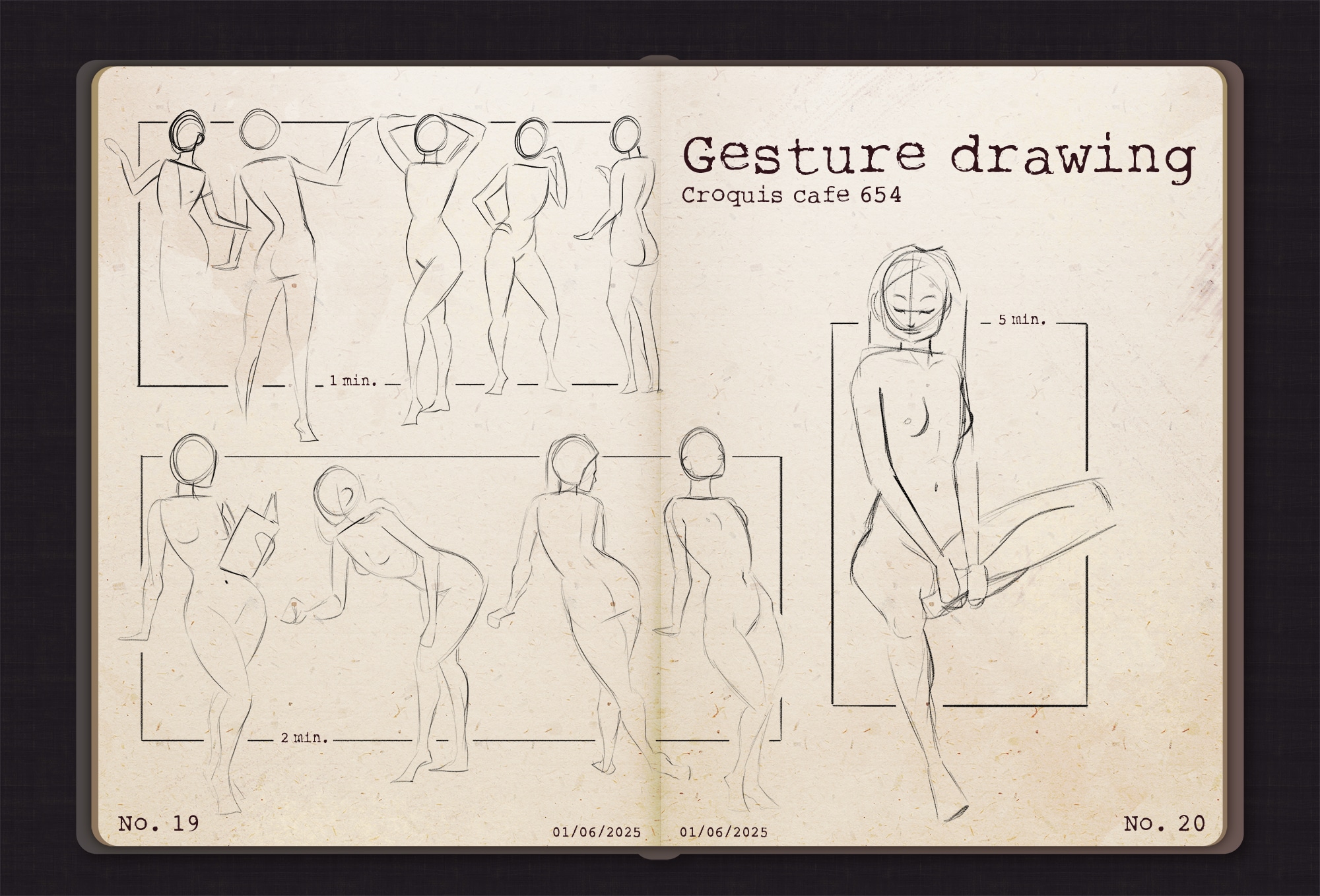 Pages 6 à 10 de mon sketchbook de gesture drawing !