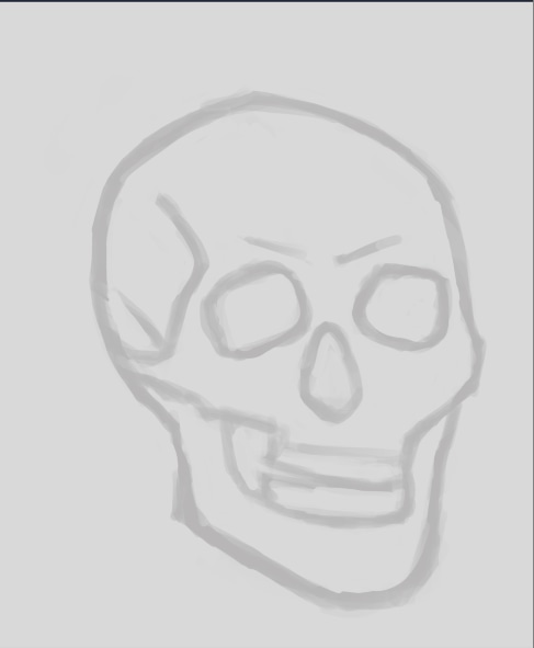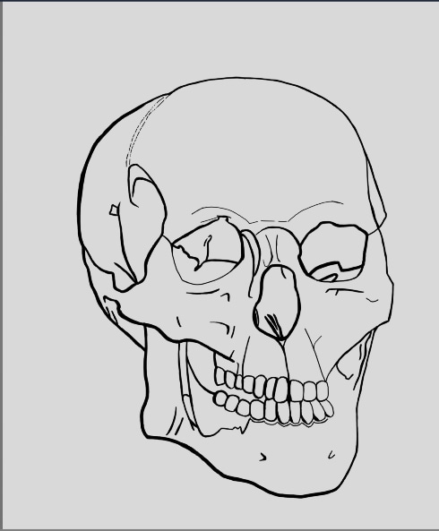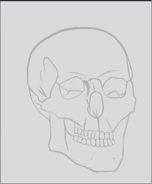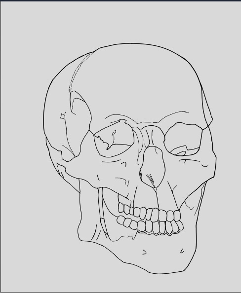 Voici le croquis du squelette que j’ai fait à l’œil. Je pense que j’aurais dû utiliser des outils pour être plus précis dans les dimensions du crâne en 3D.
