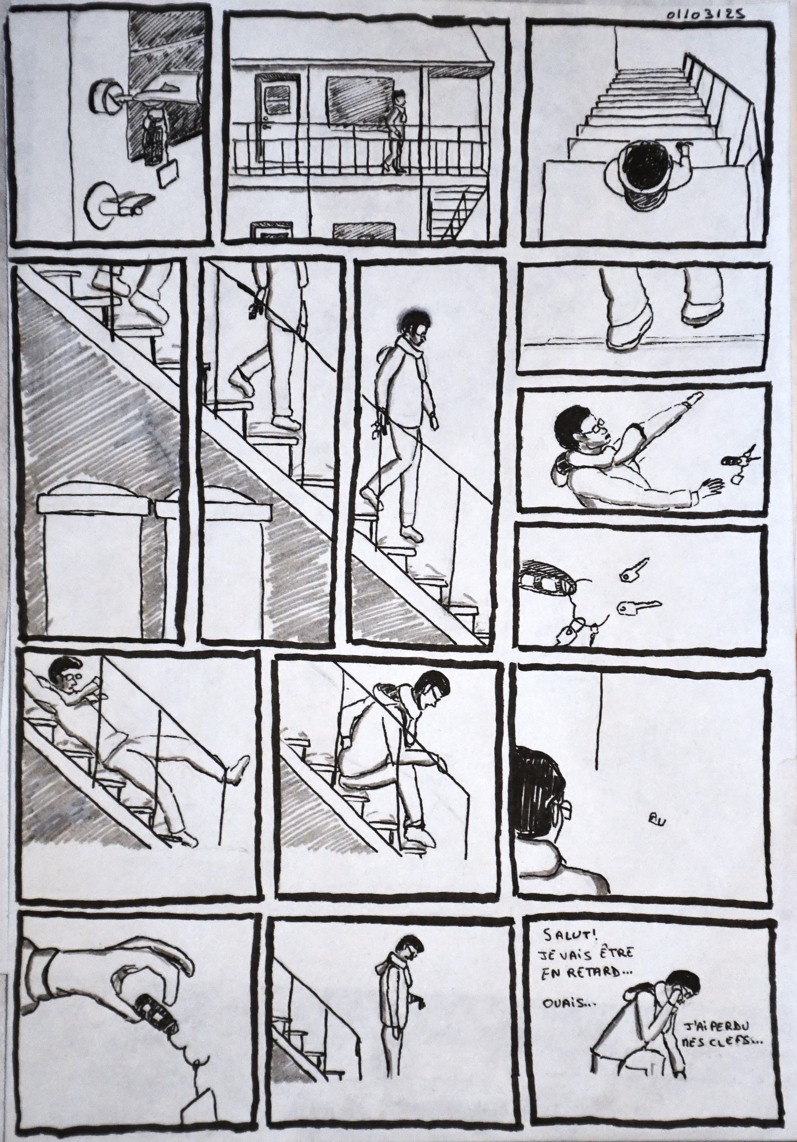 Ma première planche de bande dessinée. Les aléas du Québec et de la perte de clé dans la neige.