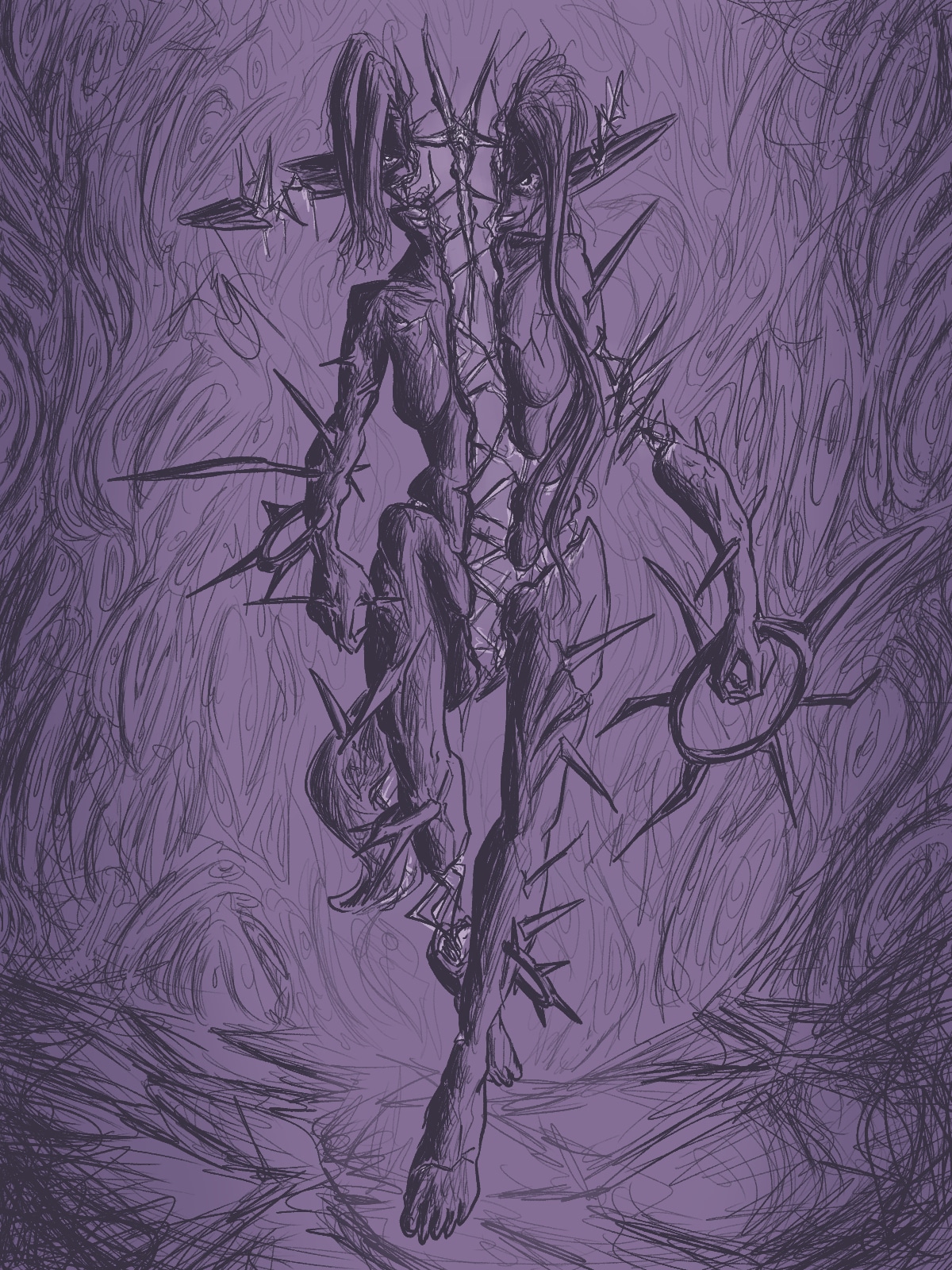 Un de mes personnages, mis en scène dans l'état le plus sombre vers lequel il s'enfonce pour bien appuyer cet aspect horreur que l'on peut chercher avec ce thème.