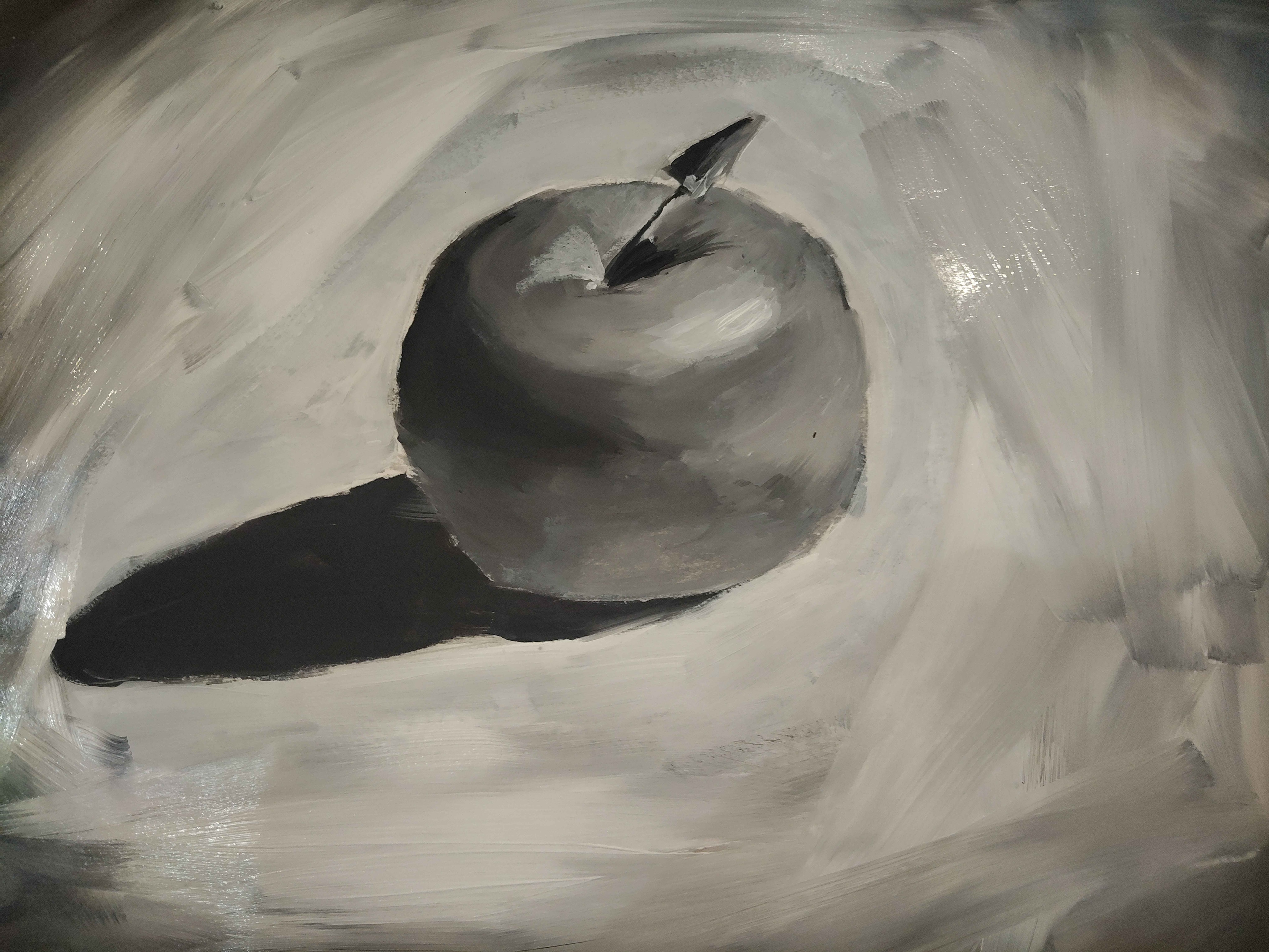 C'est ma troisième peinture, j'ai fait une pomme, pour essayer de faire quelque chose de plus simple qu'un portrait, et j'y arrive de mieux en mieux, j'arrive à mieux mélanger mes couleurs et même à les mettre sur la toile, par contre, je fais majoritairement mes mélanges directement sur la toile, je sais pas si c'est vraiment le plus optimal 🤔
