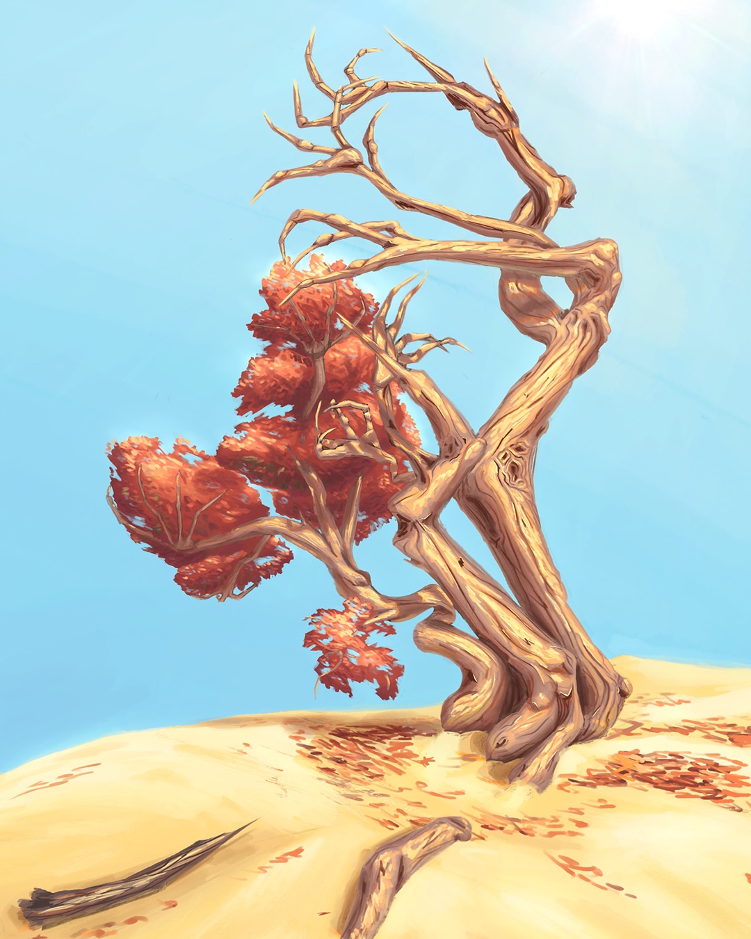 Et comme si rien ne meurt je m'ennuie, j'ai fait un arbre agonisant au soleil, essayant tant bien que mal de se faire de l'ombre avec ses ptites mains pour protéger ses dernières feuilles.