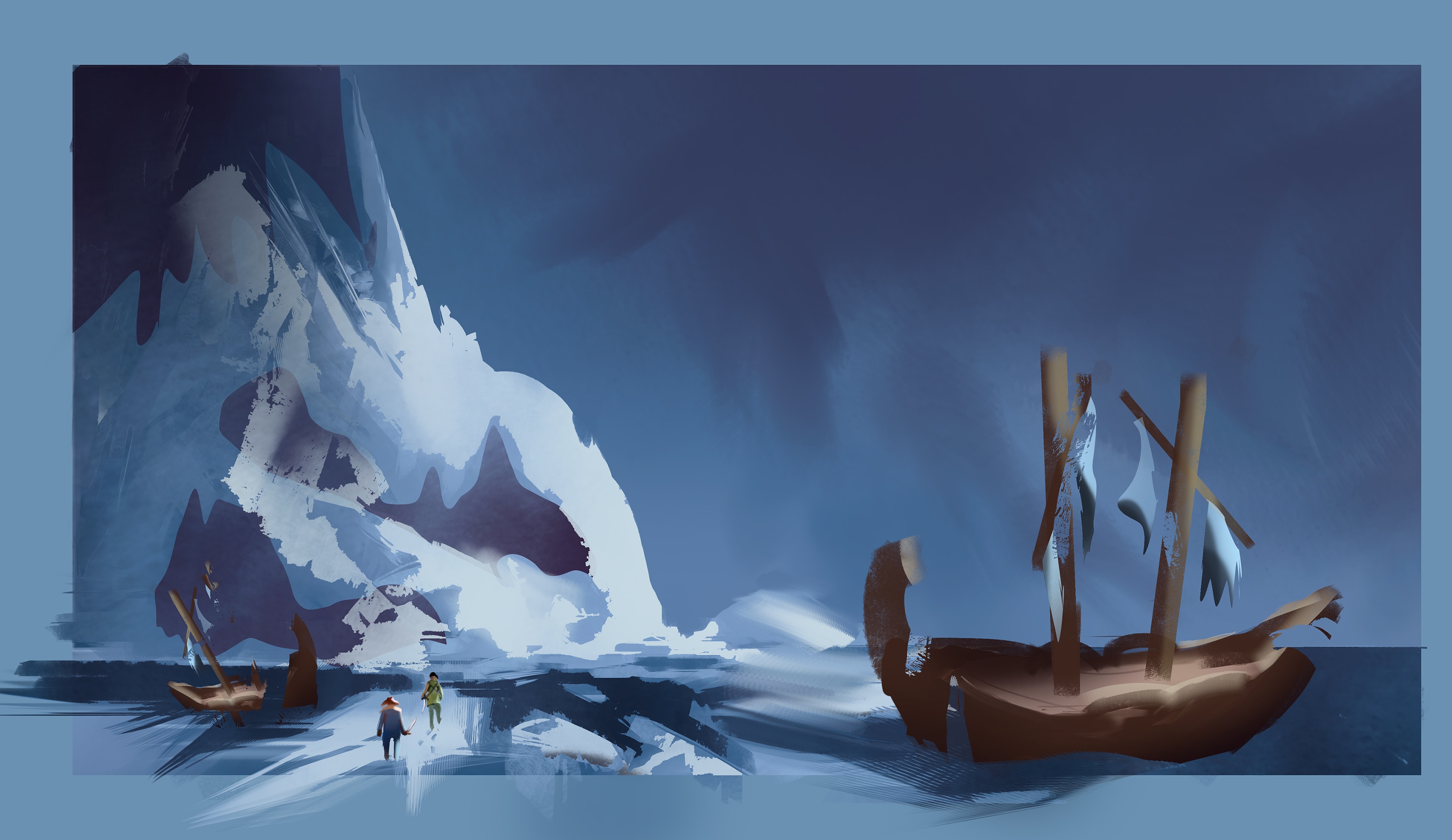 Hello, comme on en avait discuté j'ai occupé l'espace de droite avec une épave de navire bien disloquée ^^ et j'ai ajouté un duo de pirate. Avec l'un des deux déjà prêt a partir en exploration et l'autre contemplant l'immense glacier devant ses yeux.