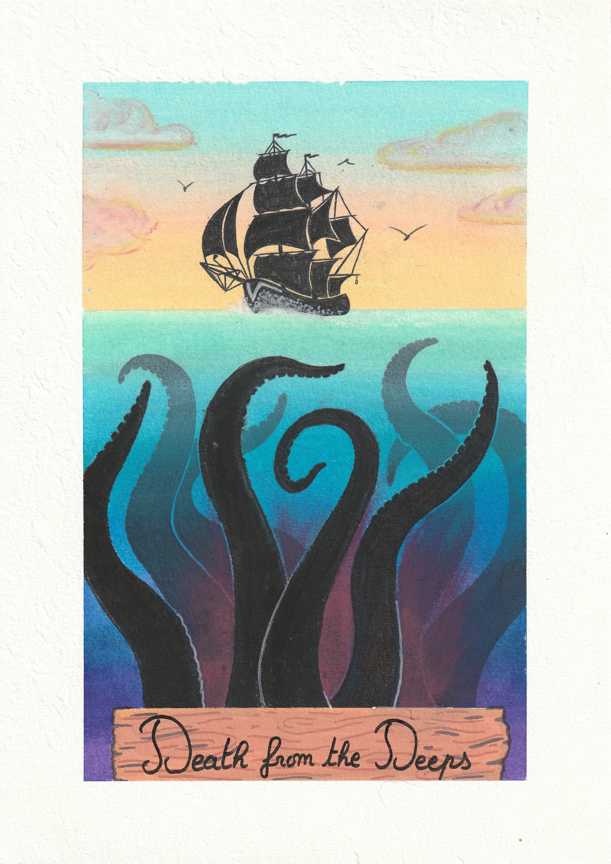 Sur ce dessin, je suis particulièrement fière de l'effet de profondeur au niveau des tentacules, j'étais pas sûre, j'ai testé (en mode OSEF YOLO trust the process, mon mantra depuis 2 mois) et le résultat est très sympa, j'ai envie de l'appliquer sur les prochains.