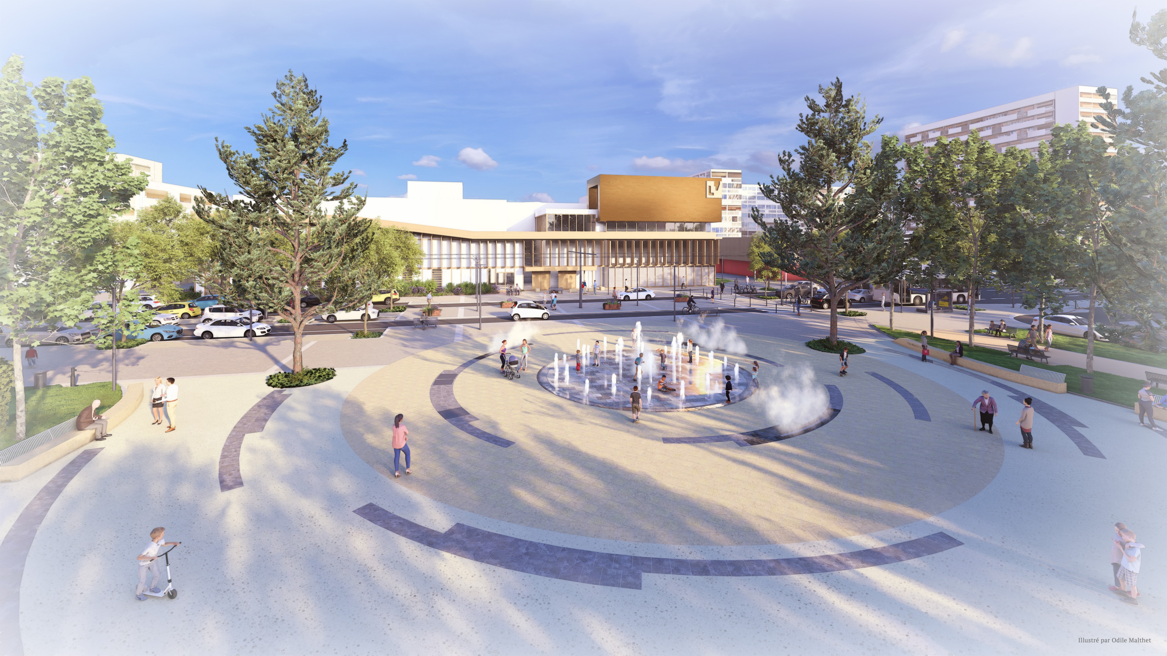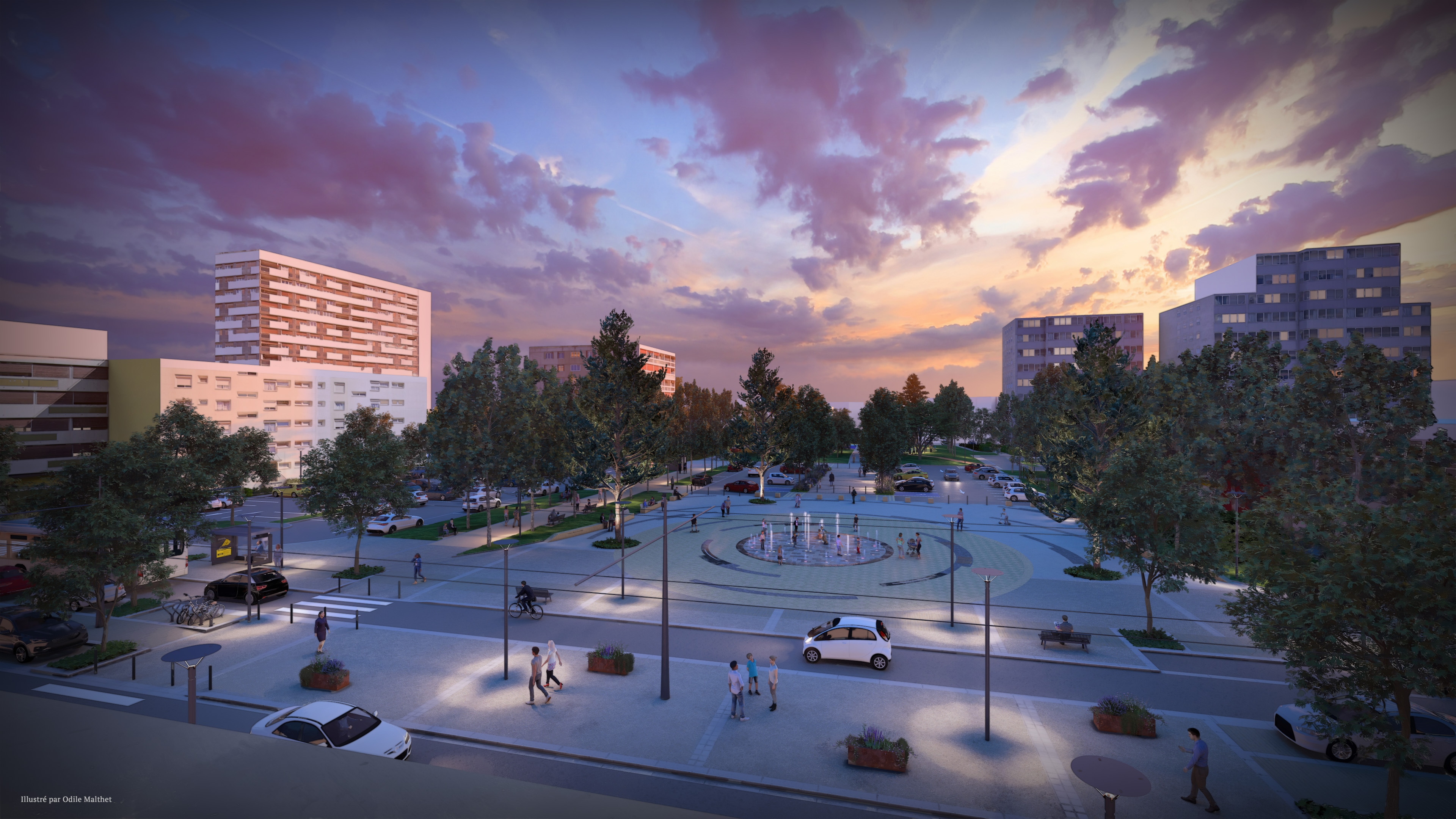 Modélisation 3D et vidéo de présentation de l'aménagement d'une place dans le 69 - France