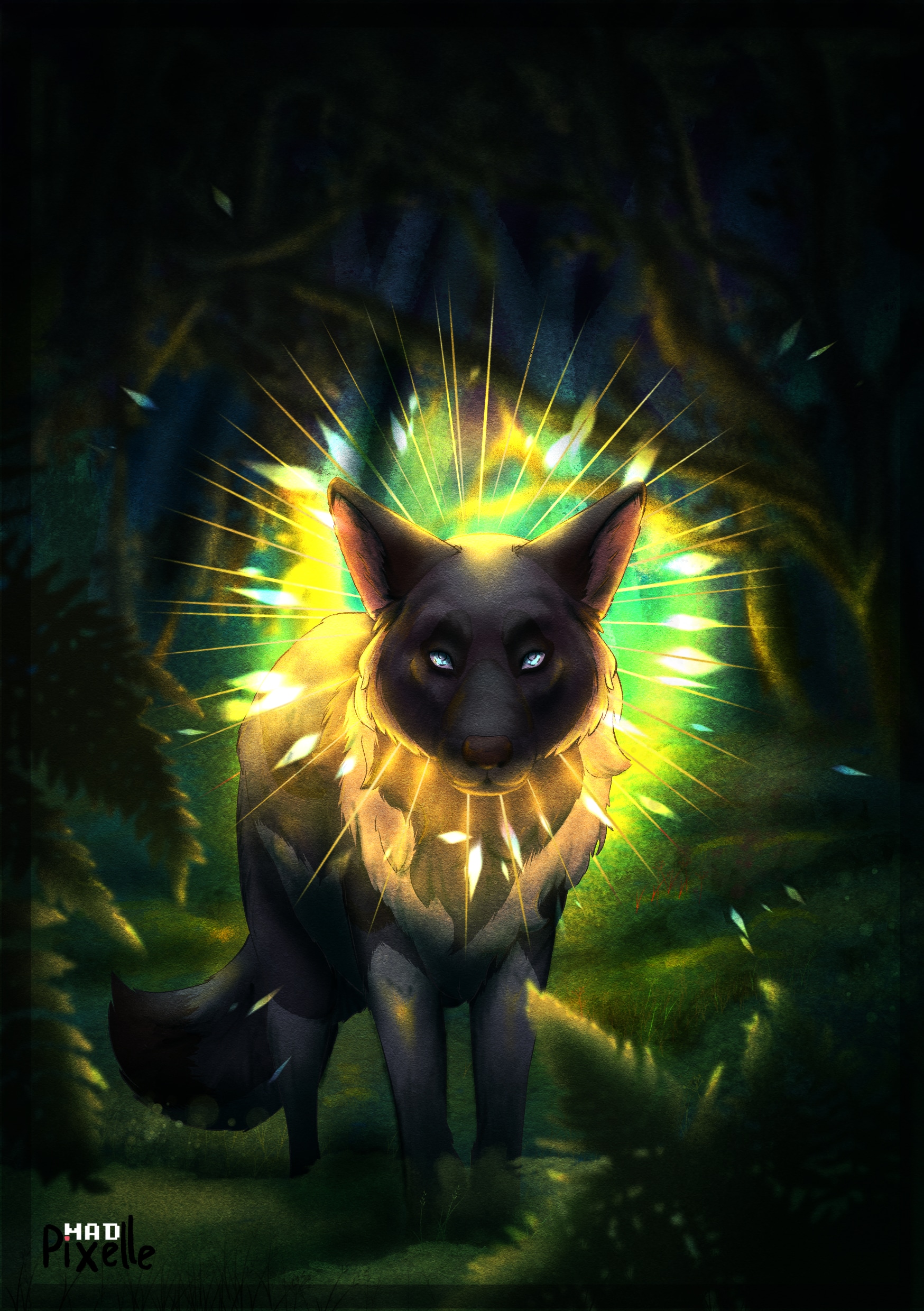 Un art trade avec une amie et son oc Theresa, une louve aveugle possédant des pouvoirs particuliers.