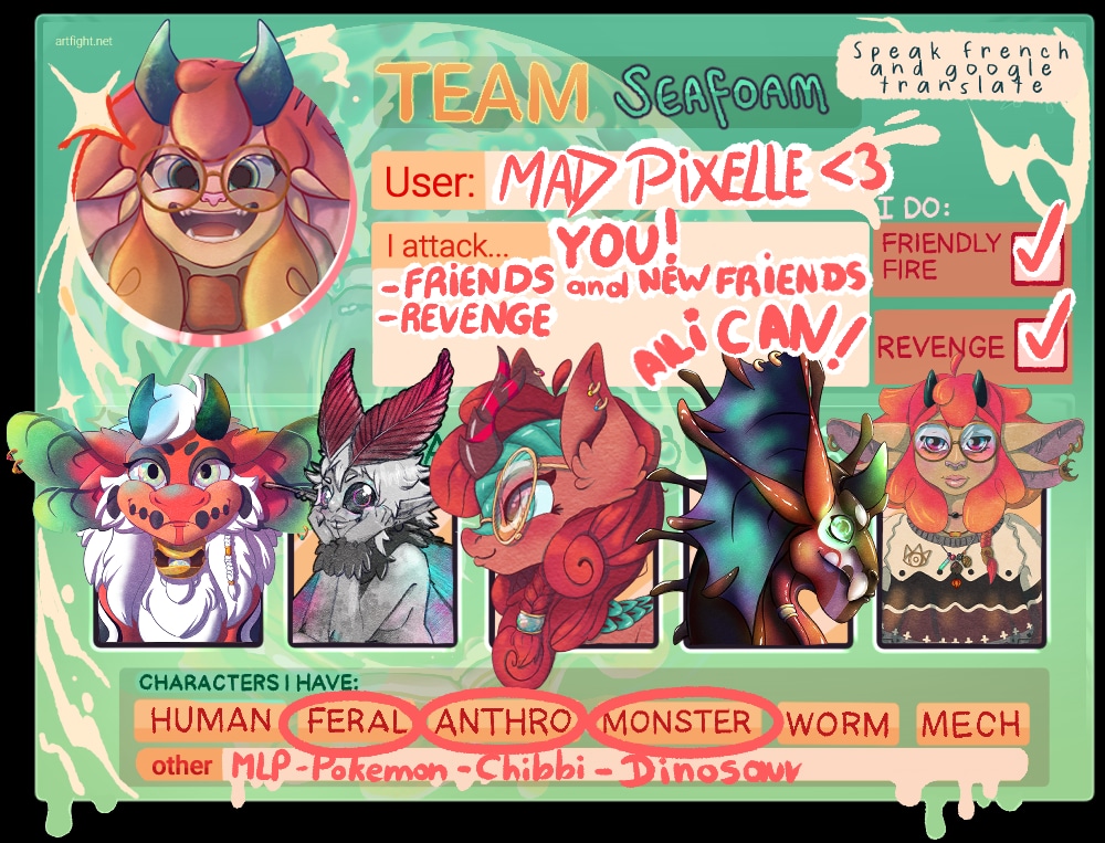 C'était mon premier artfigth ! J'ai rejoins la thème "SeaFoam" et réalisé 30 dessins pour un totale de 70 oc !