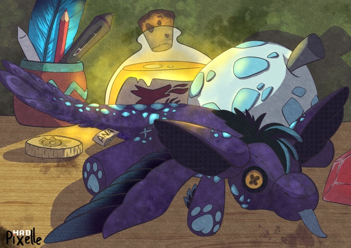 Le dessin est un ensemble de référence à Ana, le personnage de ThunderPenPrincesse. J'avais trop peur de le dessiner normalement du coup j'en avait fait une version en peluche.