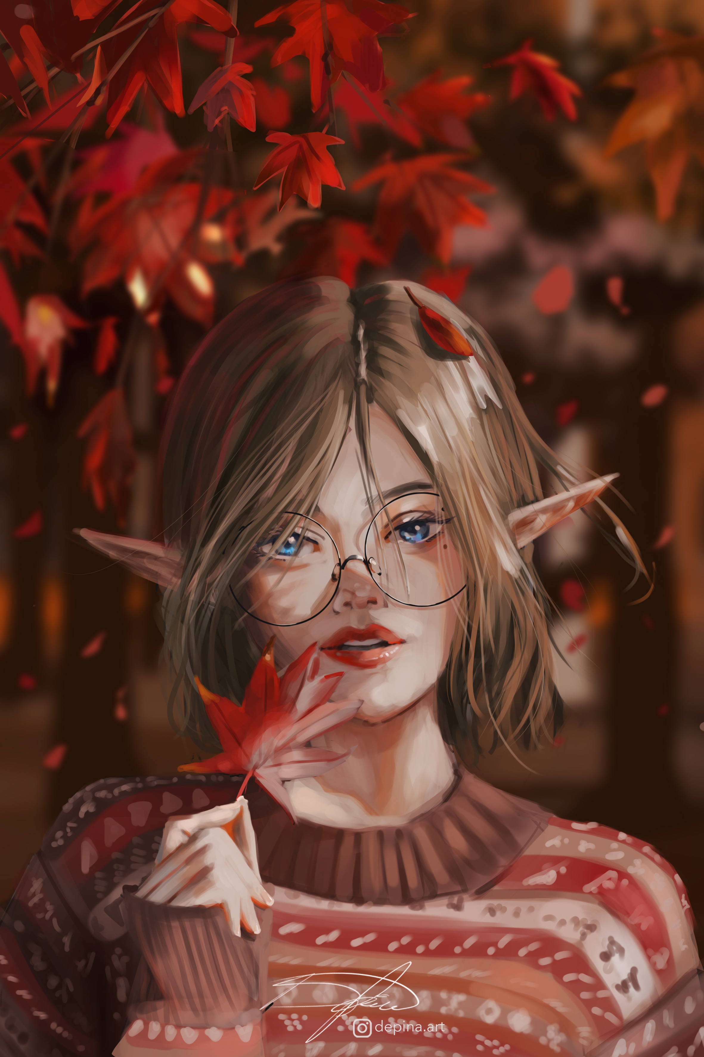 Une 茅tude au round brush uniquement. Une image pour l'automne avec mon personnage original Tia