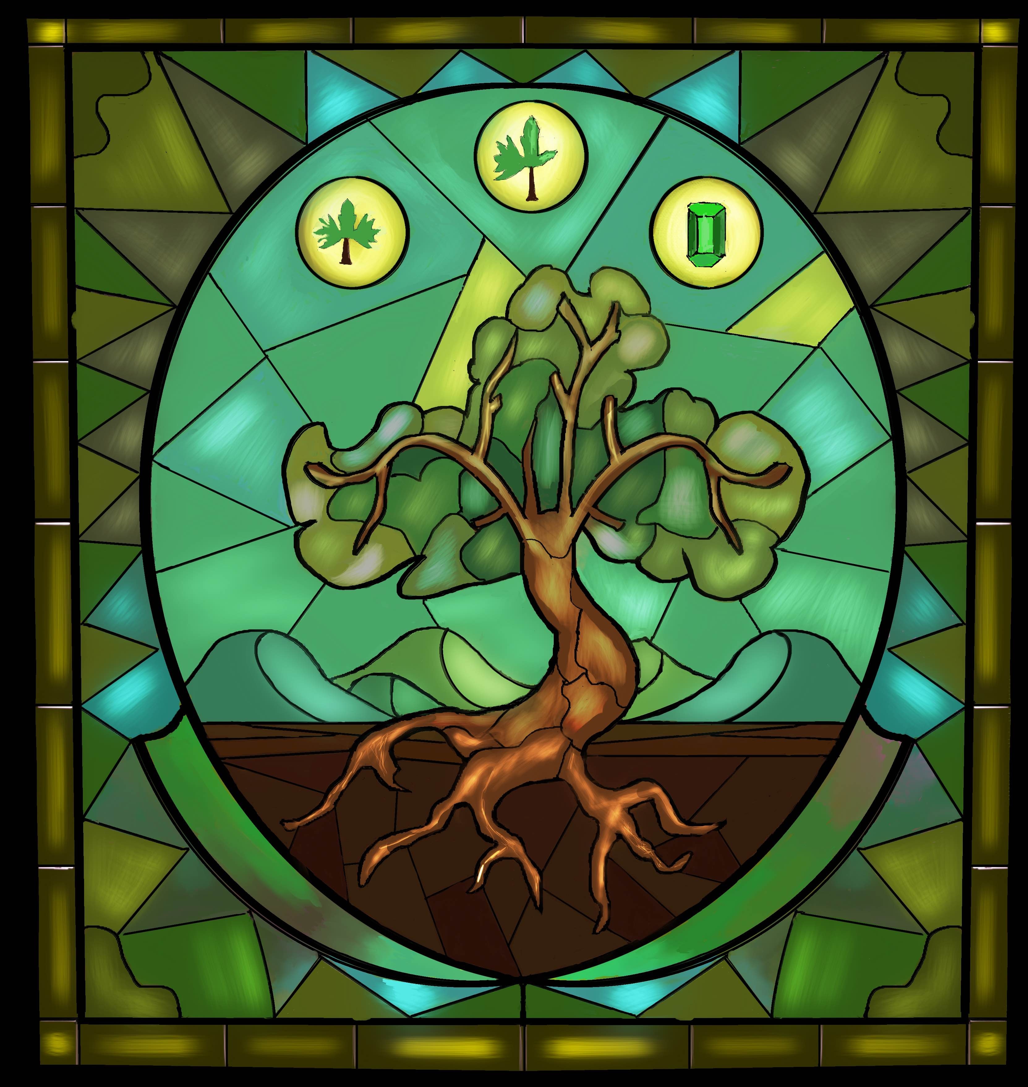 Deuxième illustration d 'un série de 7 illustrations . DA choisit par le client suite à un brainstorming avec le client. pour cette carte la couleur principale était le vert .Celle-ci représente l'arbre de vie et de transmutation de son livre de fantaisie. Les feuilles de l'arbre se transforment en émeraude et servent aussi de bijoux aux guérisseurs dans l'histoire de l'auteur .Les illustration seront incorporées au livre.