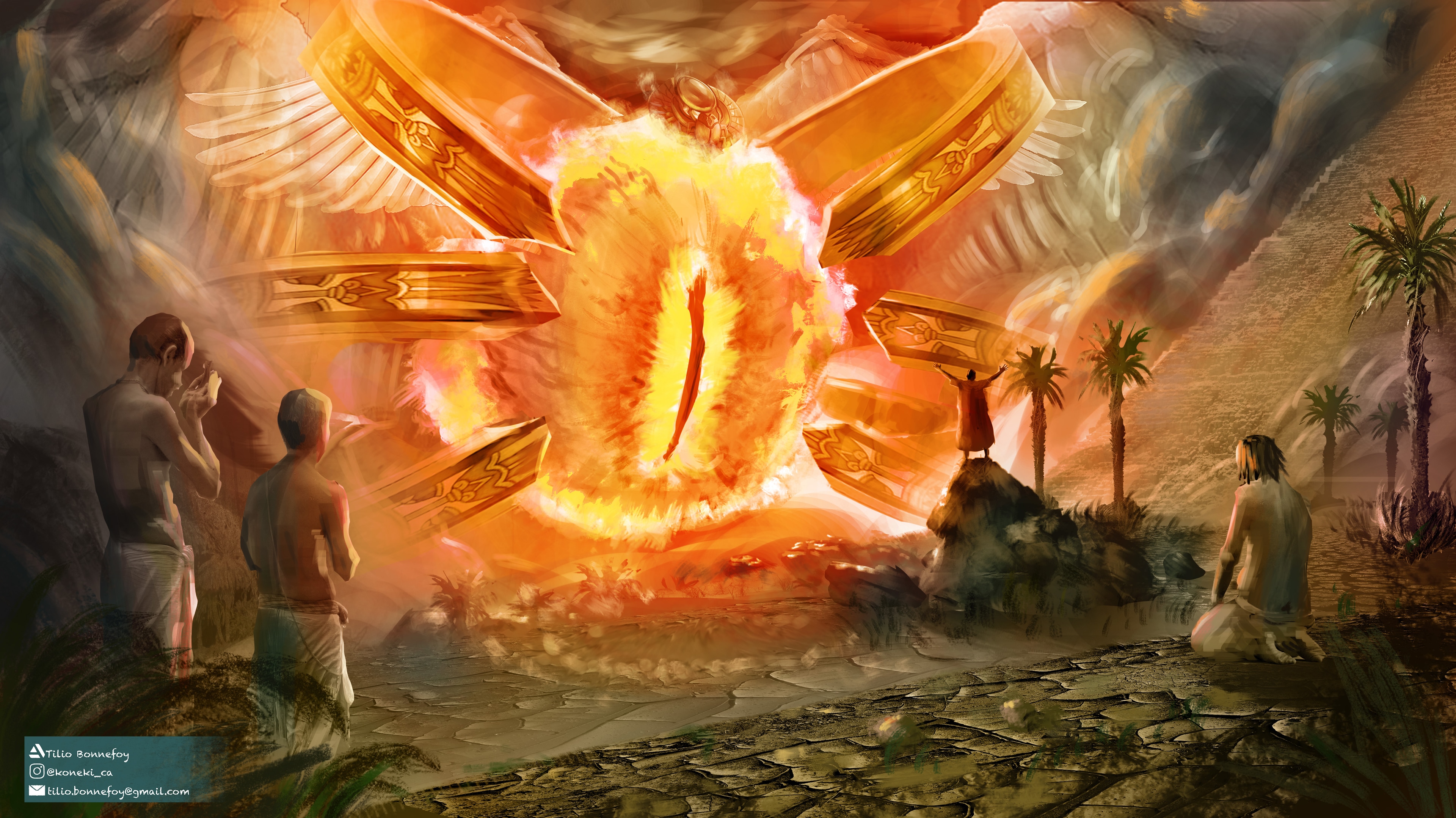 Voici une illustration conceptuel dans un univers égyptien. Le but était d'illustrer une apparition divine et de de se familiariser avec les techniques de photobashing.