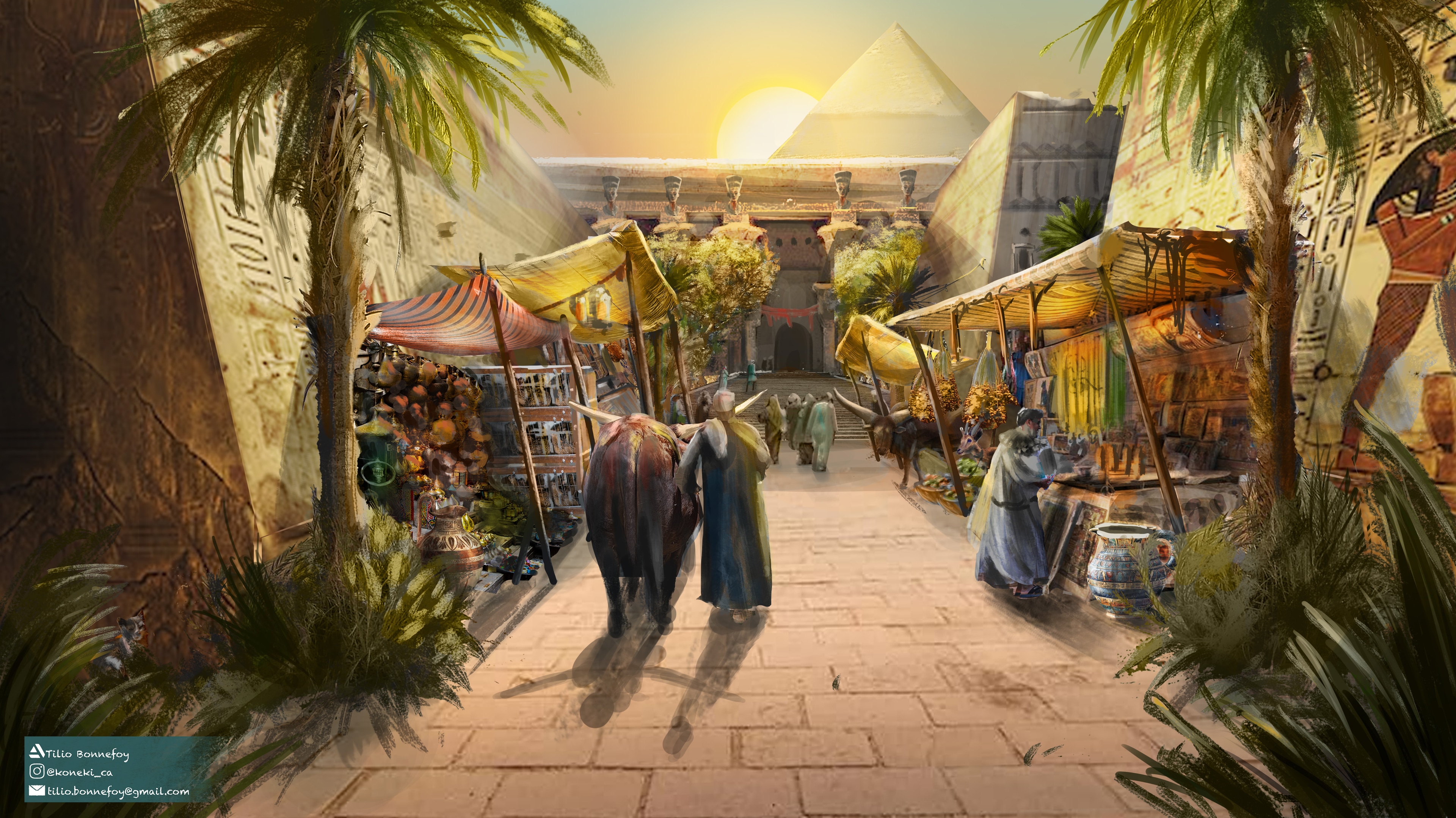 Dans la même lignée que l'apparition divine voici un environnement plus calme, un marché Egyptien