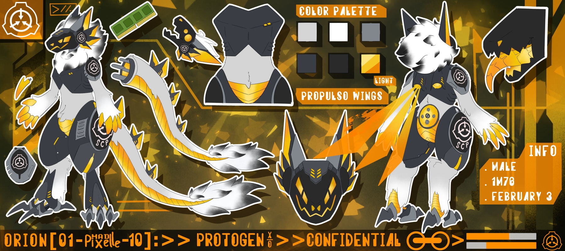 J'ai adoré créer ce personnage mais c'était un sacré défis pour quelqu'un comme moi qui a tendance à éviter les mécha. J'adore le côté Deux Ex de la mise en page, mon seul regret c'est certaines petites incohérences entre les différents points de vue, j'ai pas eu le courage de revenir sur ce qui était déjà fini alors que certaines choses s'ajoutaient au design.