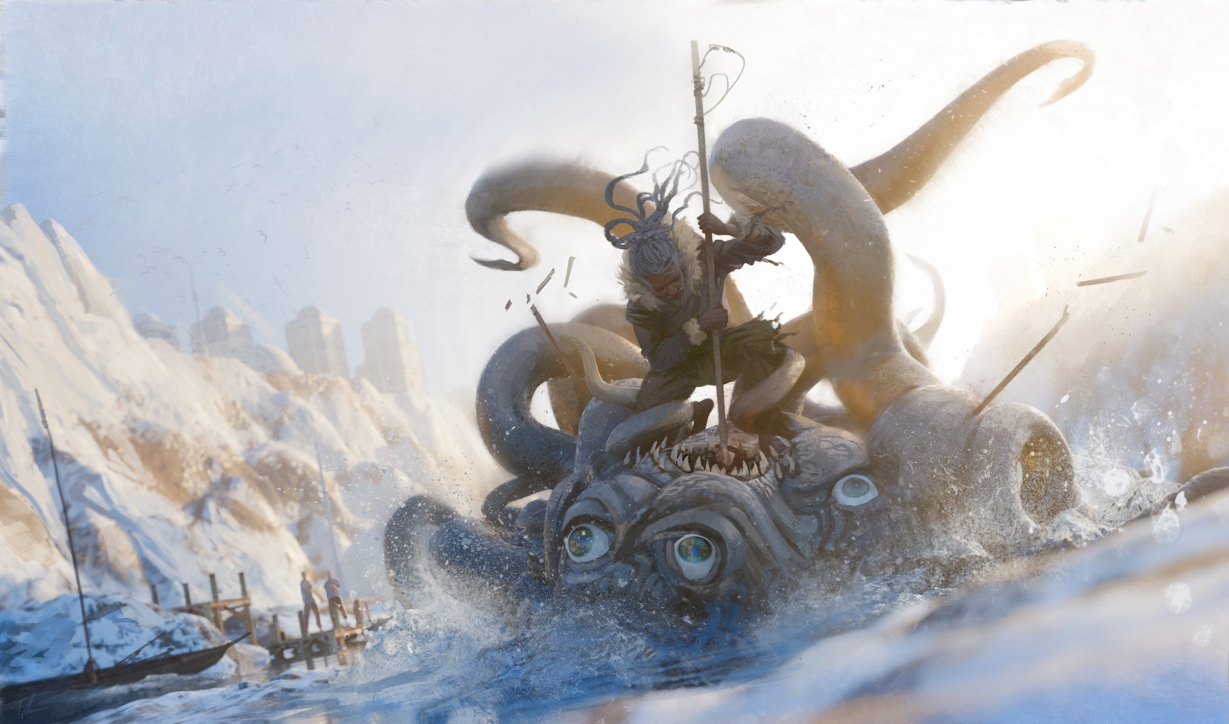 I liked the idea of a village where people fish for large sea creatures in a completely normal way.