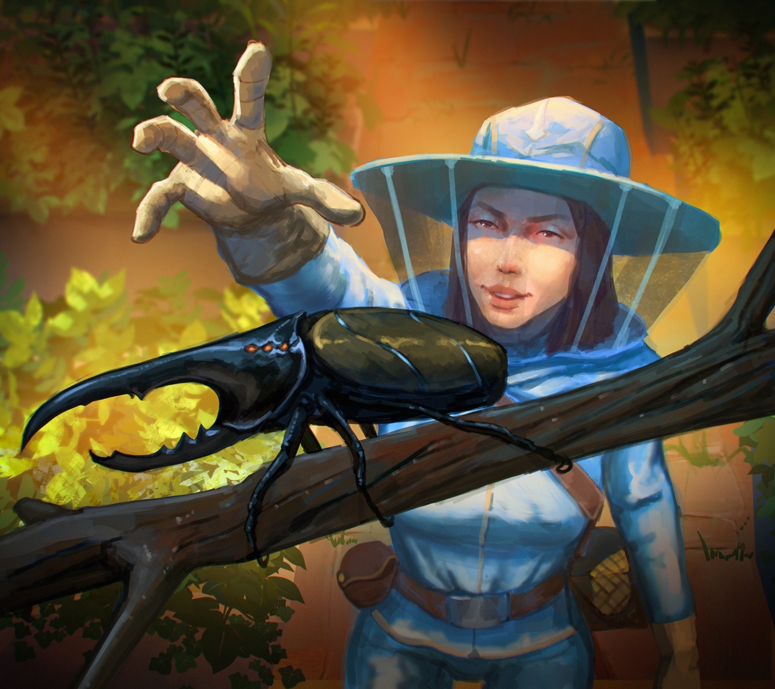 Je viens vous présenter l’une des cartes réalisées pour le jeu Kronika, un projet sur lequel je travaille actuellement. Vous pouvez découvrir ici un aperçu de l’univers et du style visuel du jeu, avec la carte "Collecteur d'insecte" !