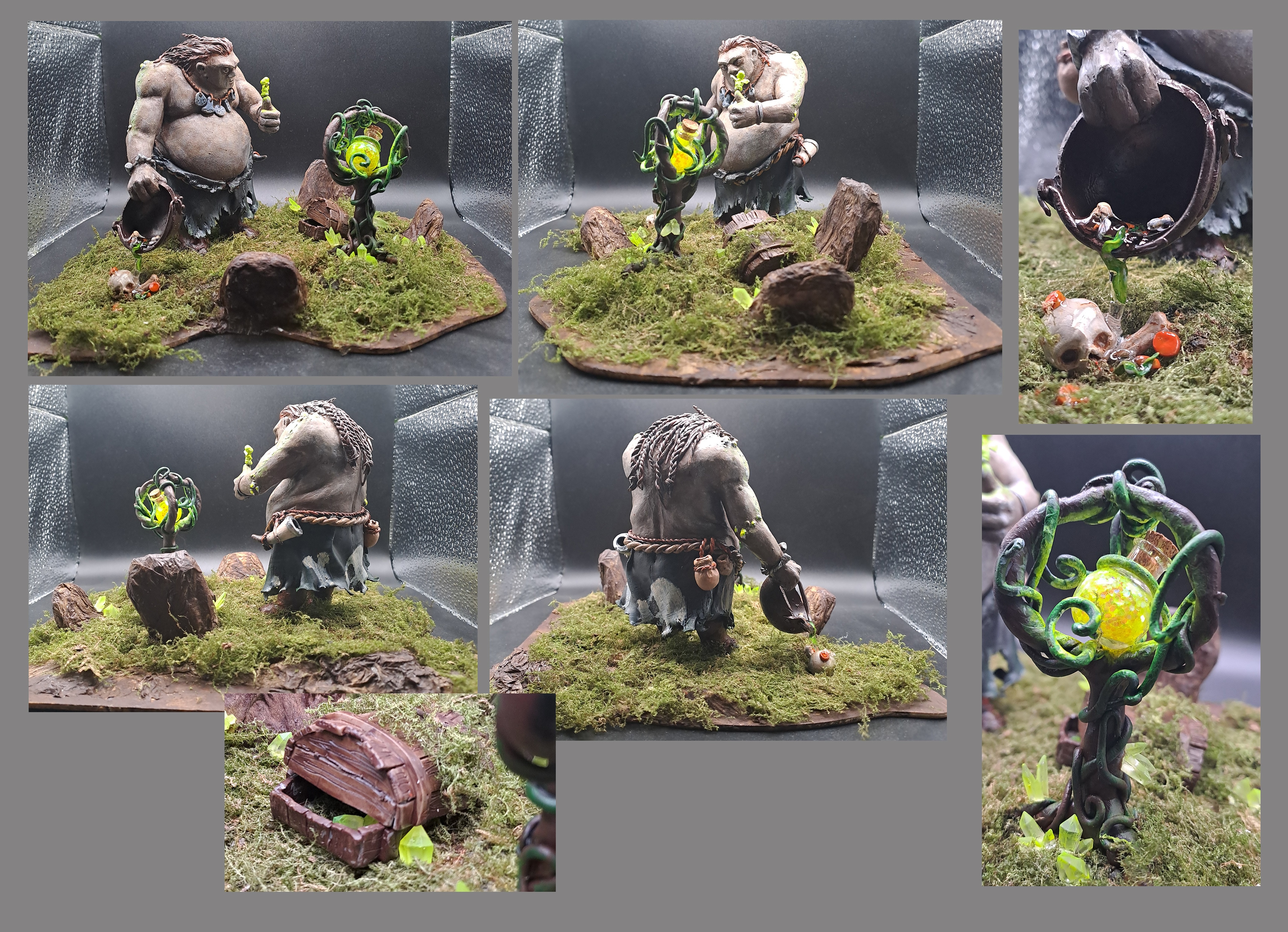 Un troll réalisé en pâte polymère (Super Sculpey) peint à l'acrylique et accessoirisé pour un diorama du challenge 20.