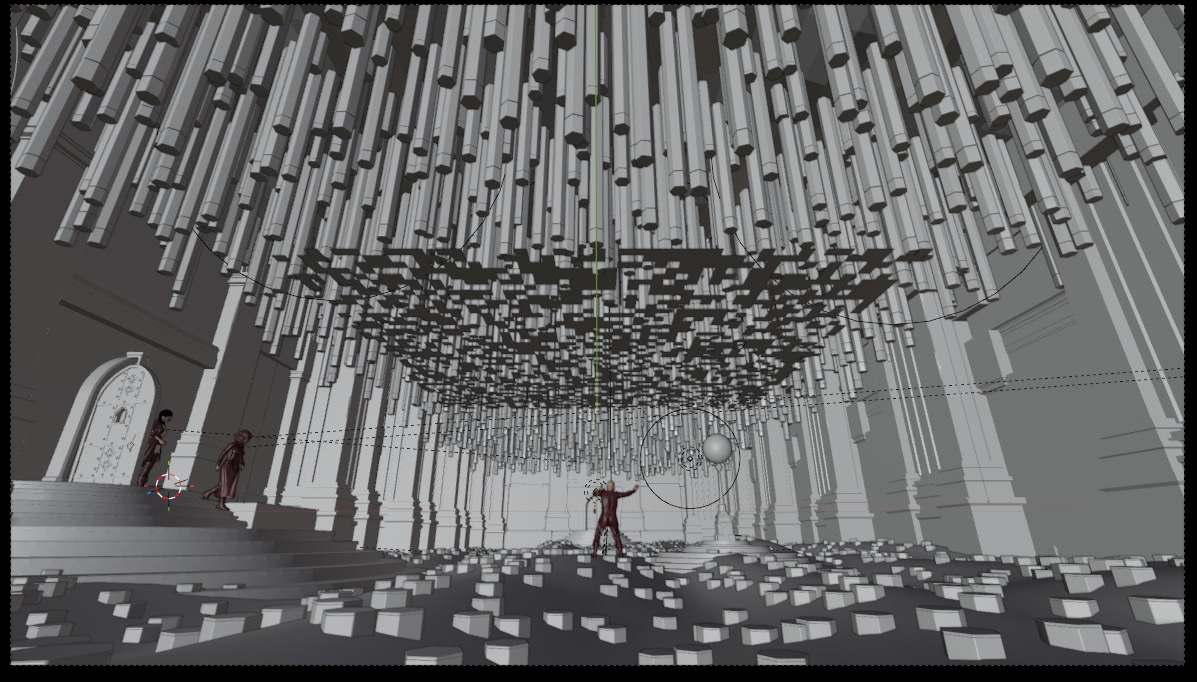 Je rattrape mon retard. Cette image va servir pour décrire la nurserie, une partie de la cite ou le mana est contraint via les barres de metals. Je me suis bien amuse avec les Geometry Nodes pour faire le plafond.
