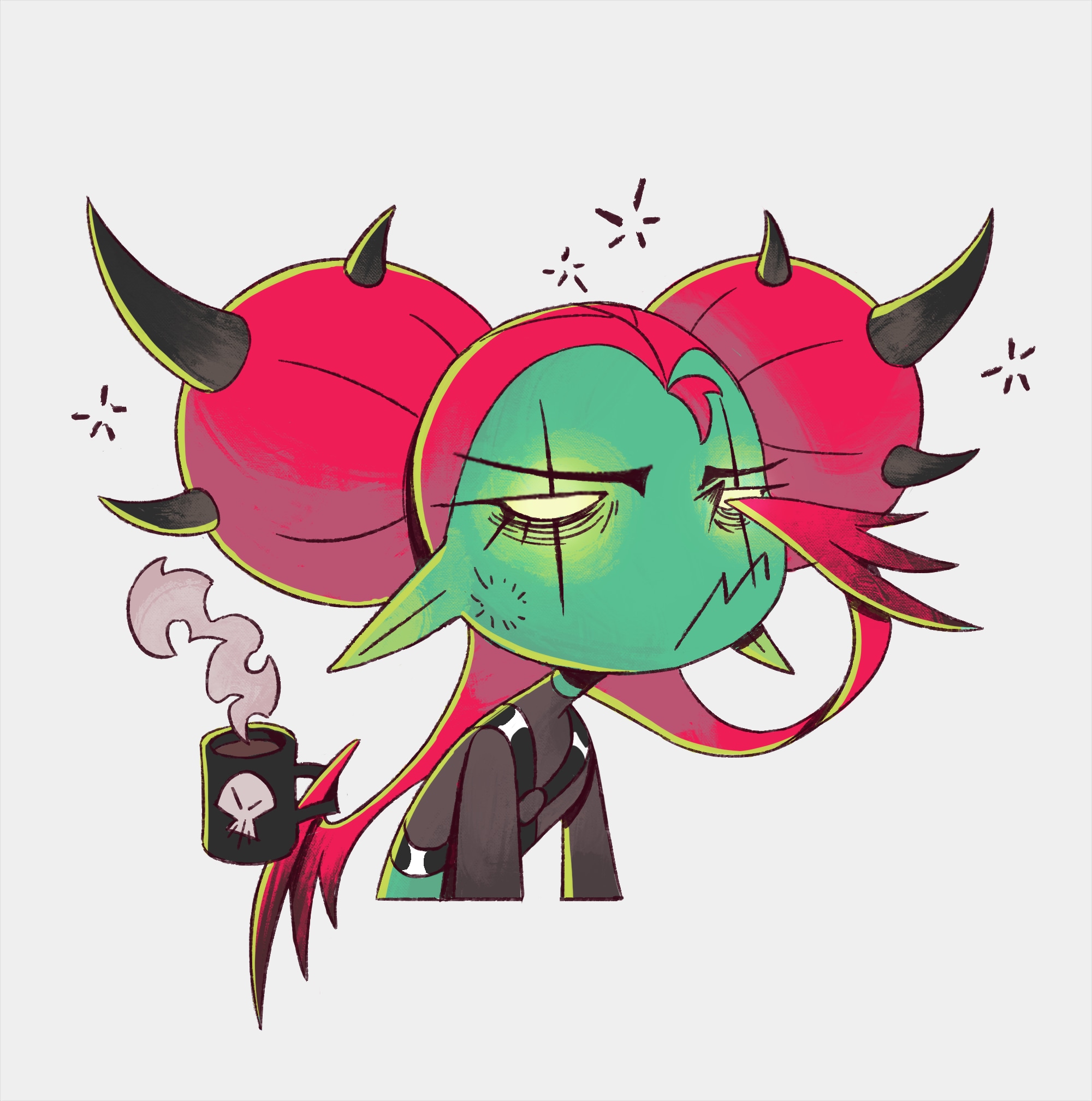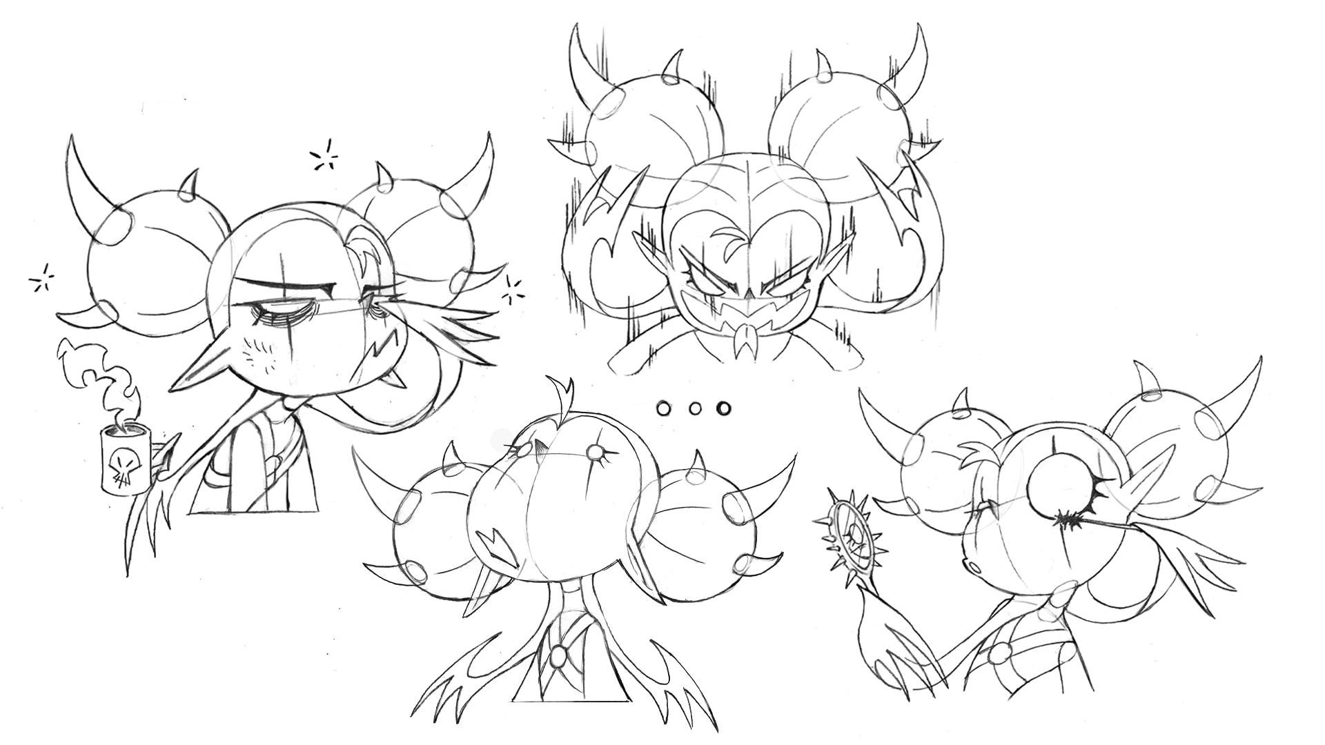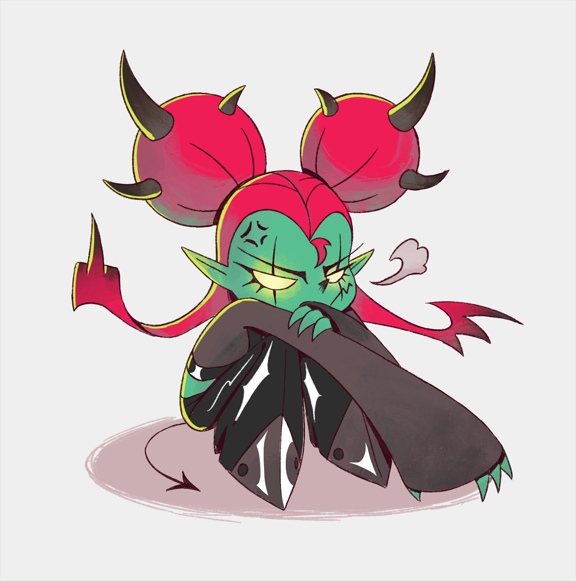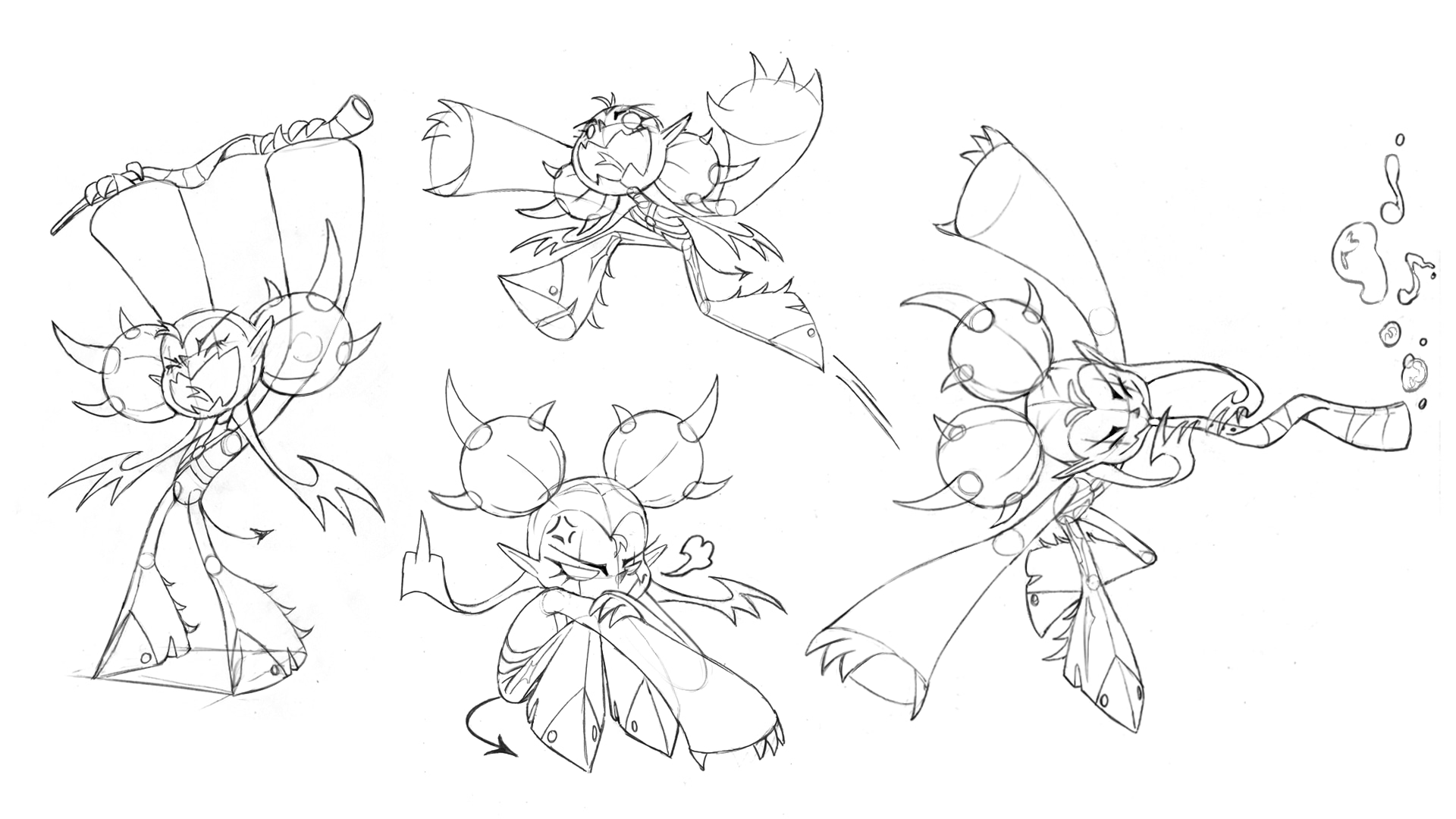 Here my last character design project around a demon metalhead who uses her bats wings to play a strange flute made from an animal horn.
