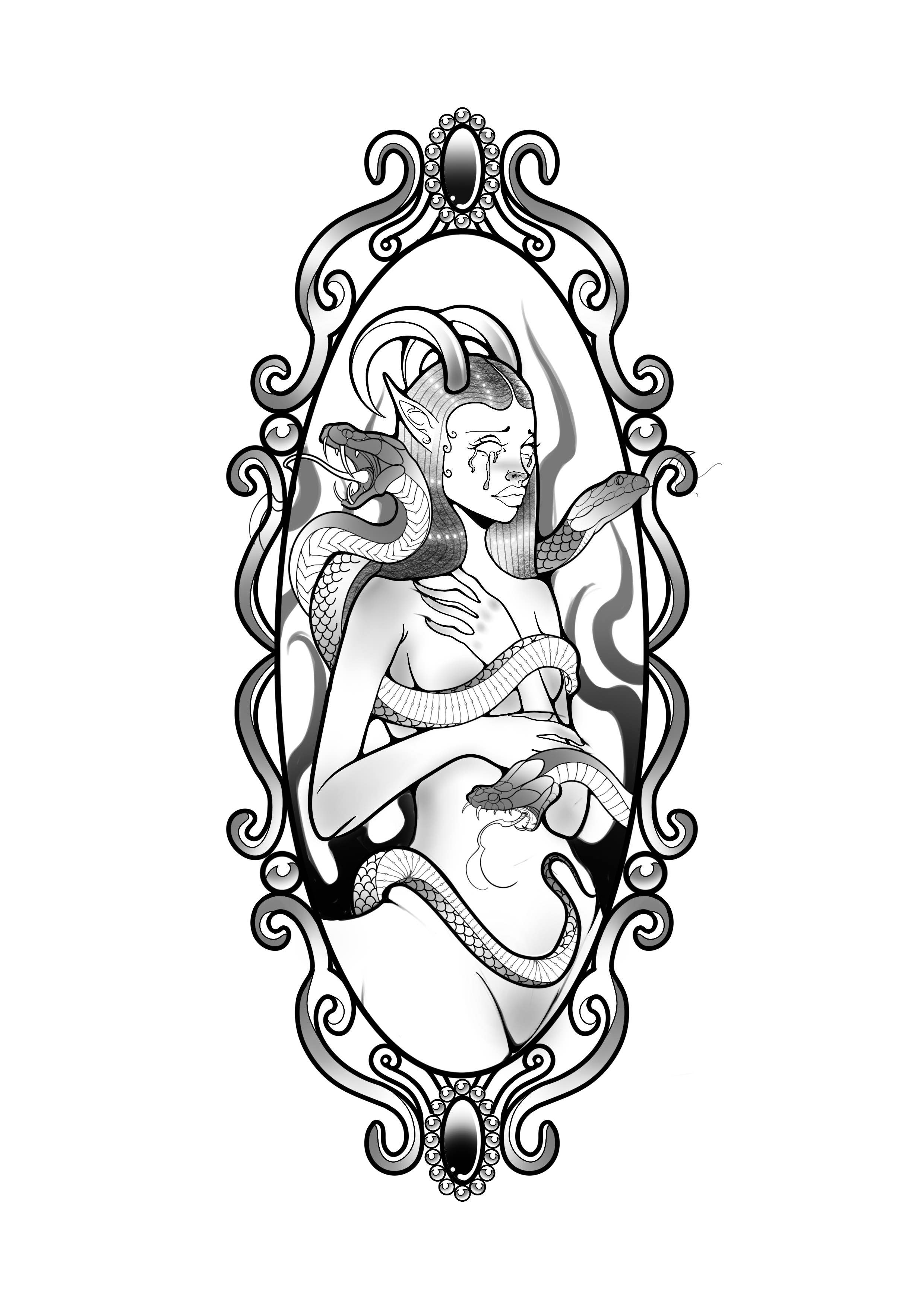 Dessin réalisé dans le cadre de mon activité de tatoueuse