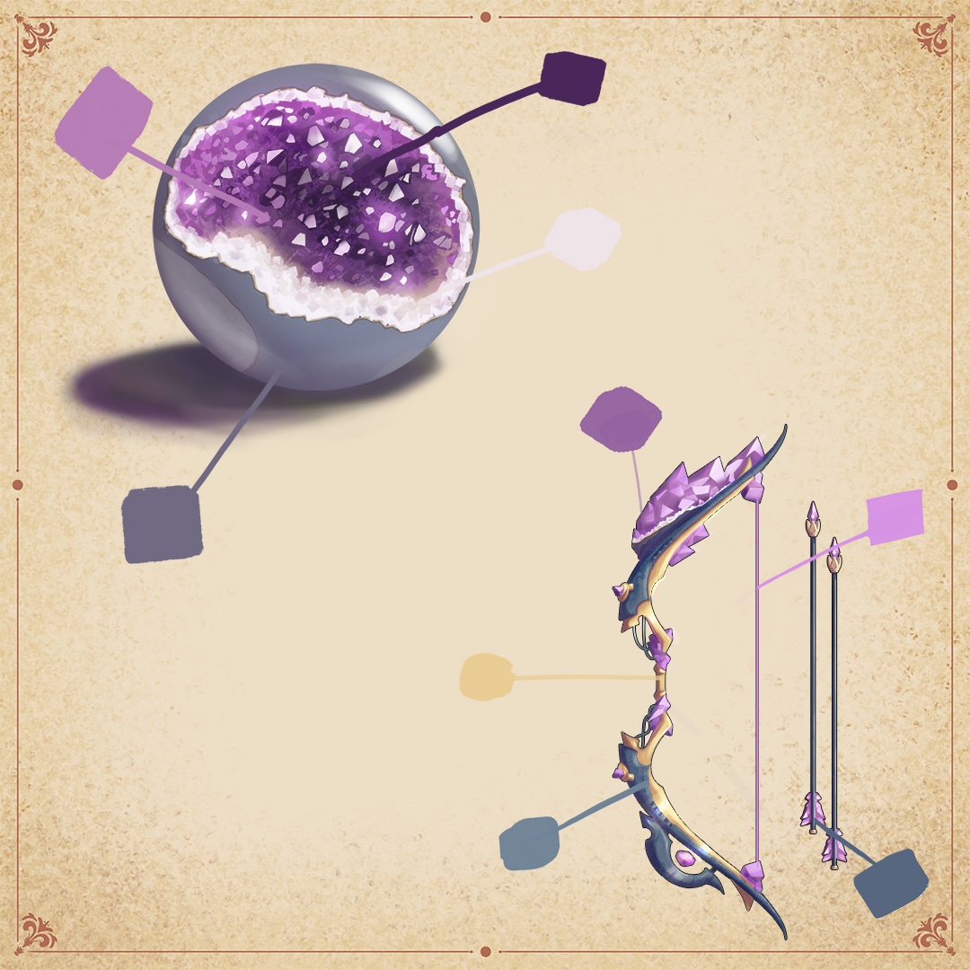 Aujourd'hui je me focus sur l'améthyste, et j'en profite pour faire le concept art d'un arc qui utilise ces matériaux !